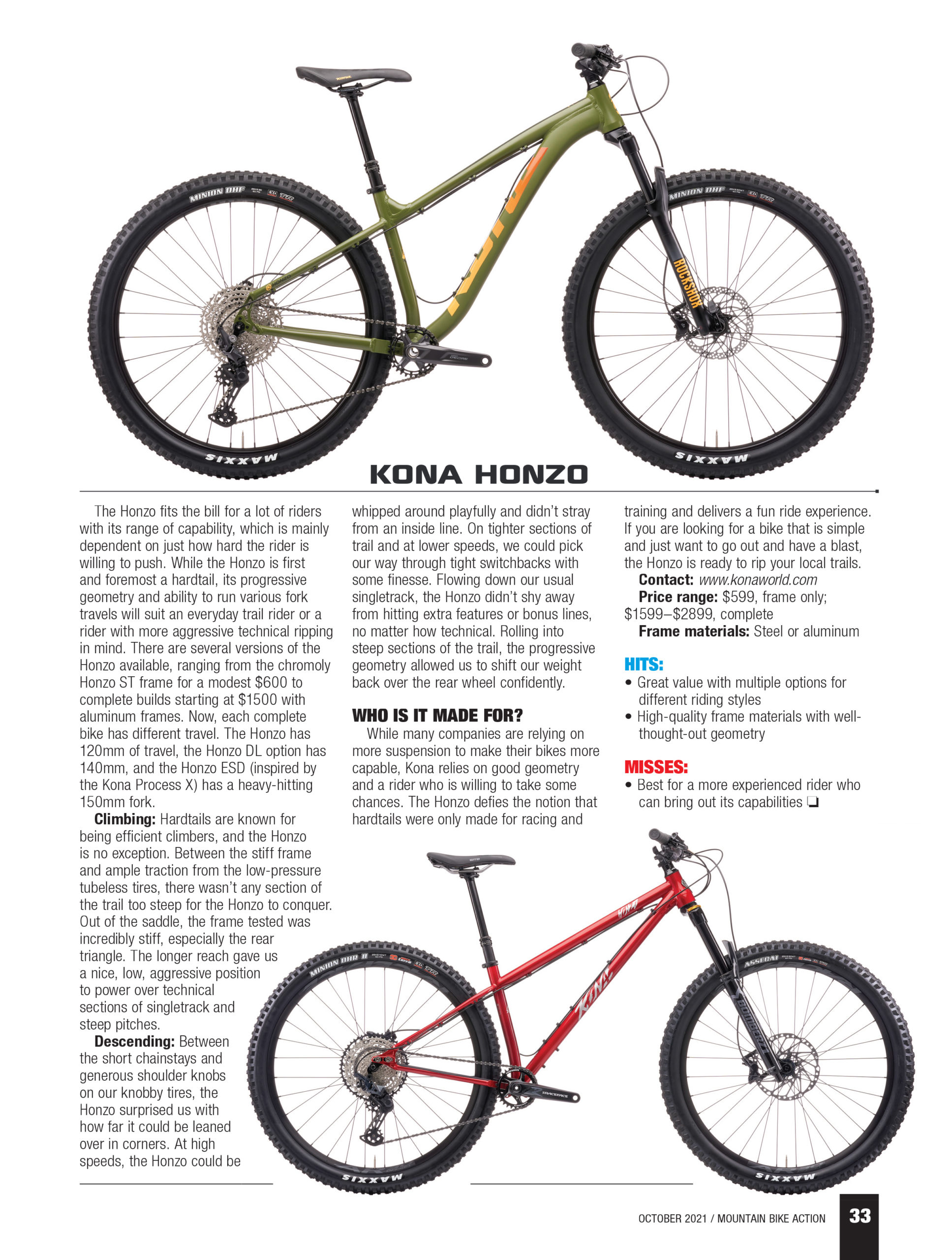 Mountain Bike Action’s September issue hit the newsstands recently and with it this solid overview of our Honzo line of bikes.