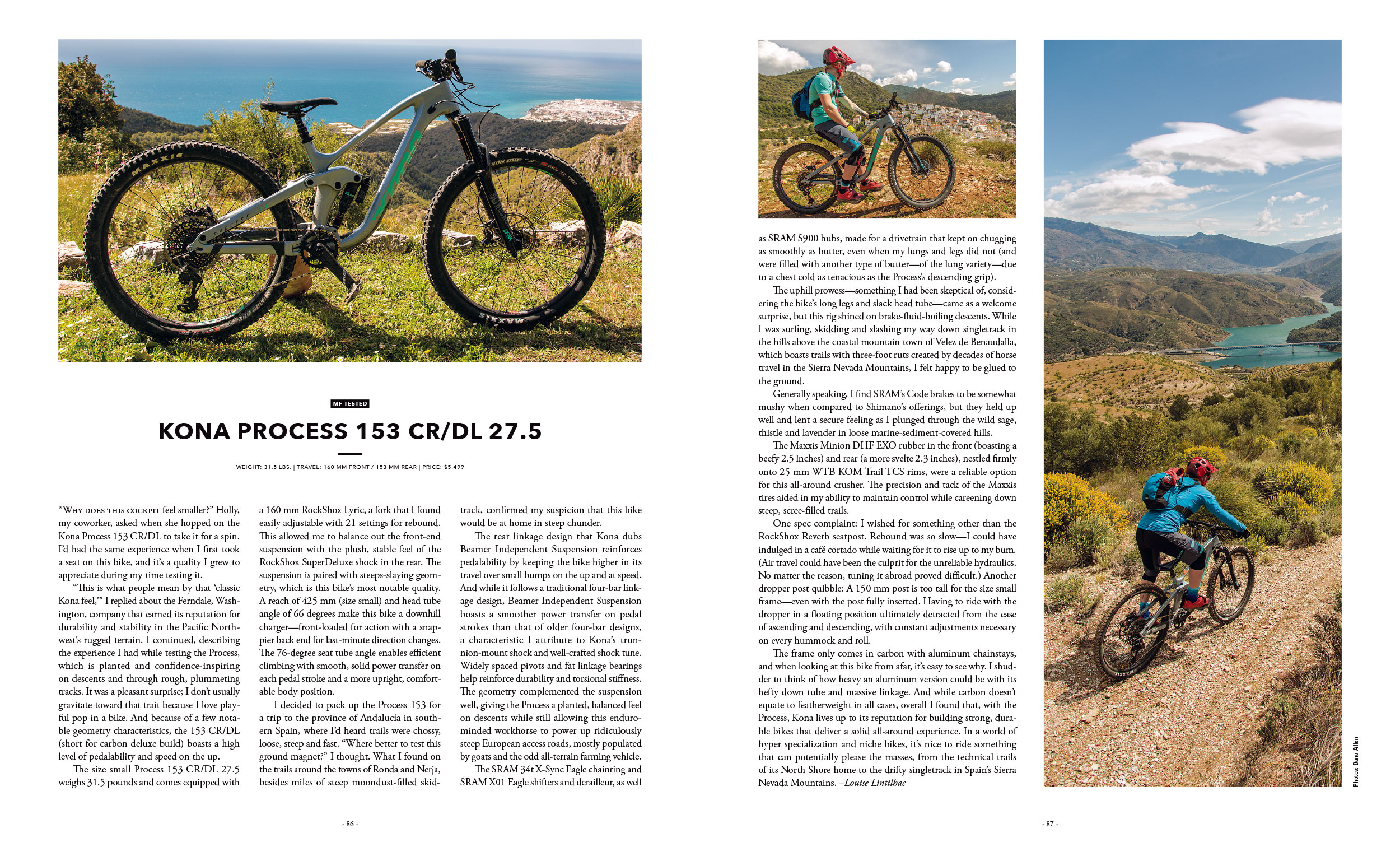 “Kona lives up to its reputation for building strong, durable bikes that deliver a solid all-around experience. In a world of hyper-specialization and niche bikes, it’s nice to ride something that can potentially please the masses, from the technical trails of its North Shore home to the drifty singletrack in Spain’s Sierra Nevada Mountains.”