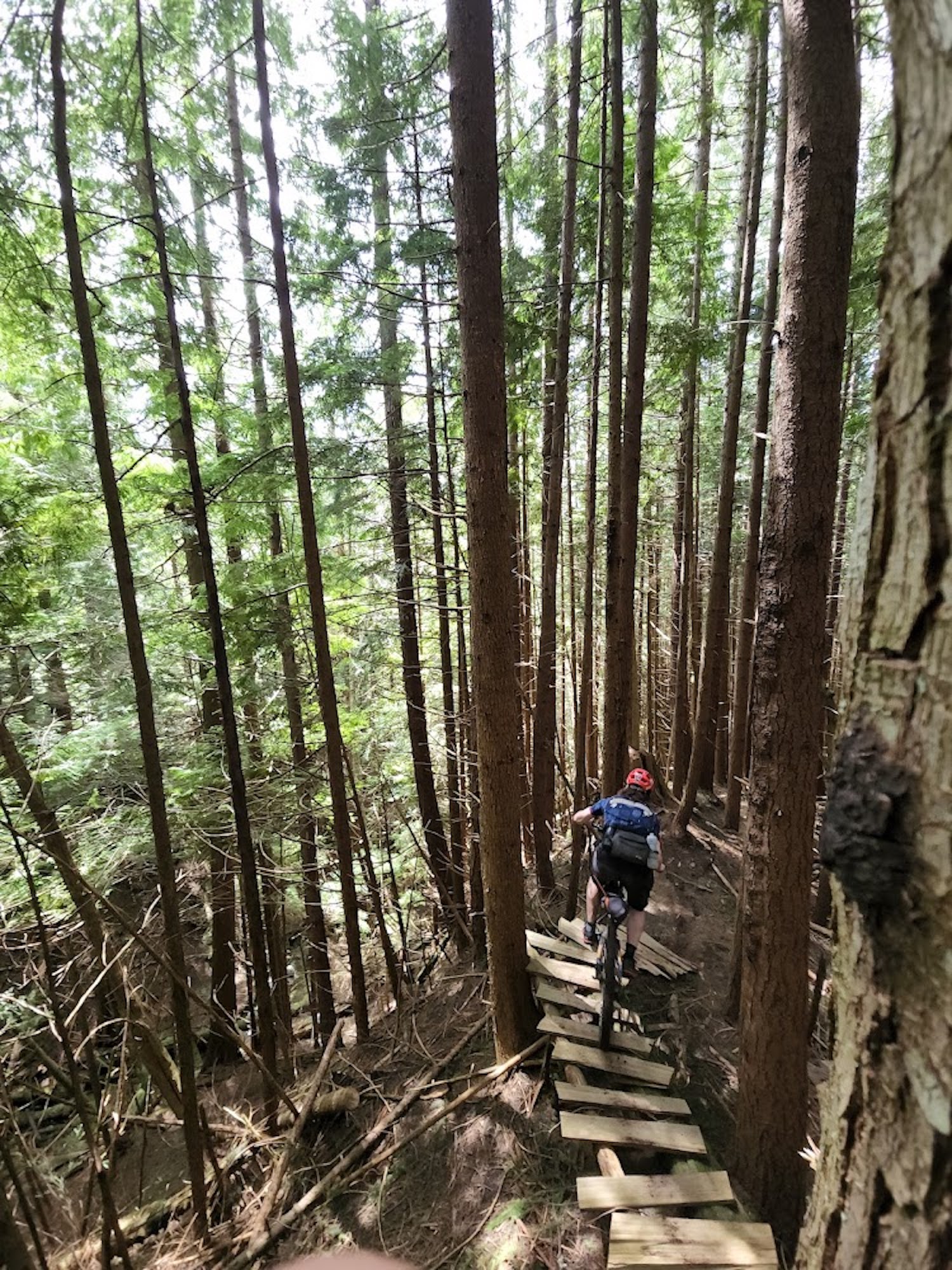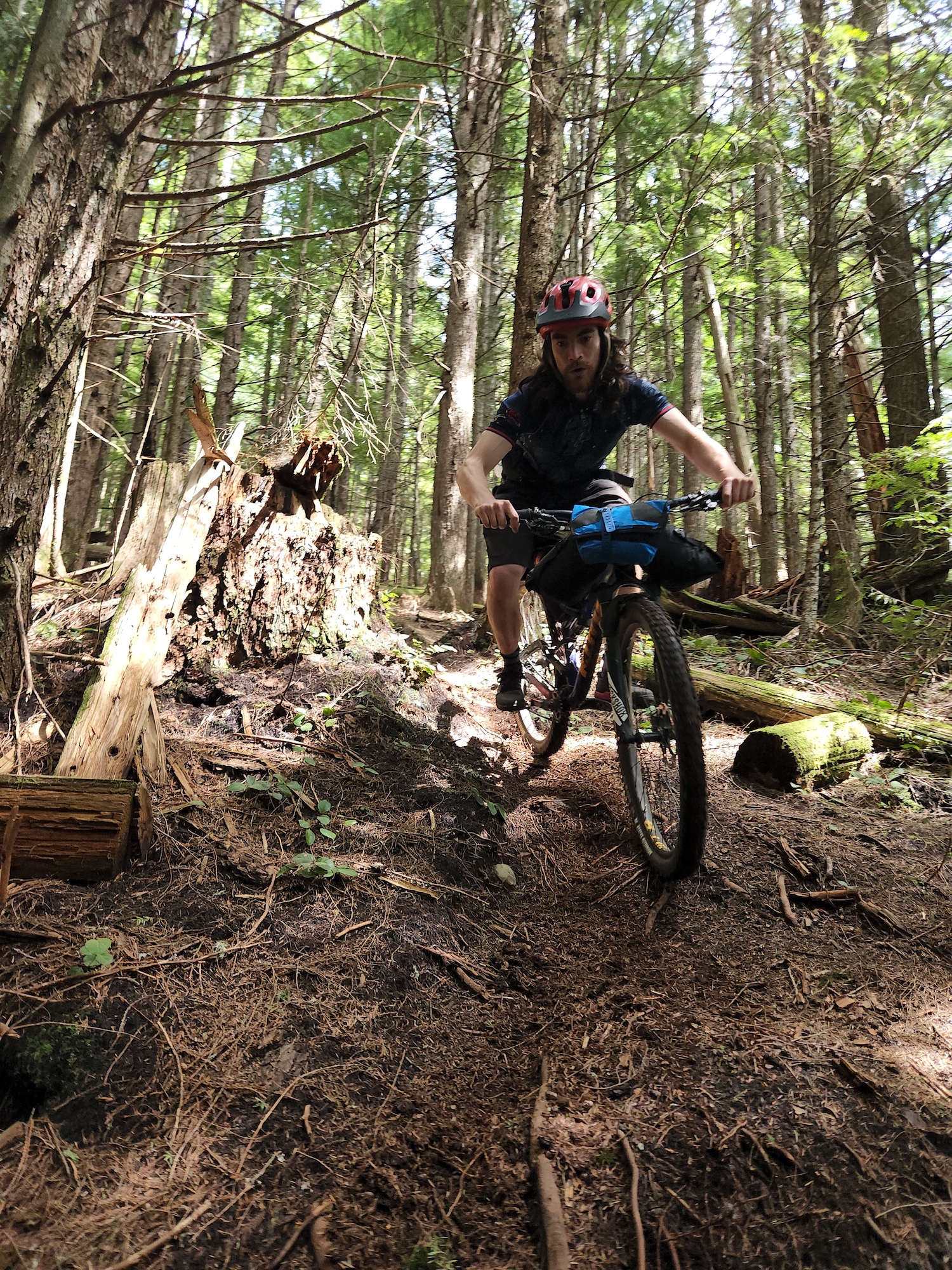 Ten minutes after getting off the ferry, you enter the rainforest, and don’t exit for 32km. The initial ascent up sidewinder, Hwy 102 and 103 up and across Mt. Elphinstone is some of the best climbing I’ve ridden as it boasts mulchy single track and snippets of descents to keep you inspired. Accompanying me for the day was my friend Mike who later led me down a steep, loamy unsanctioned trail that followed a ridge at the top of a micro valley. I thought that I would be underbiked on this one but surprisingly the Process 111 was more than capable. The amount of rear-wheel traction, balance, and control geometry offered me was incredible.