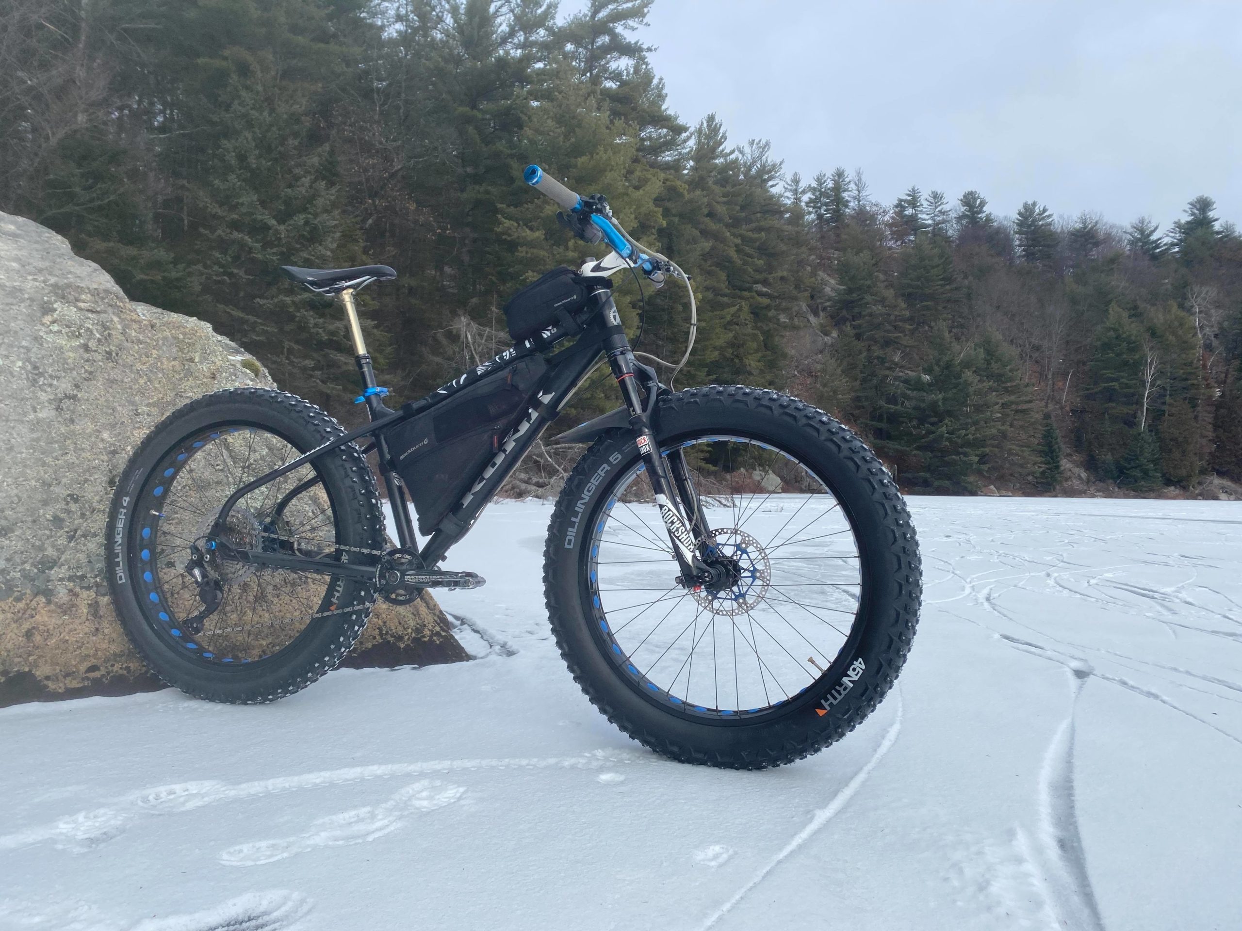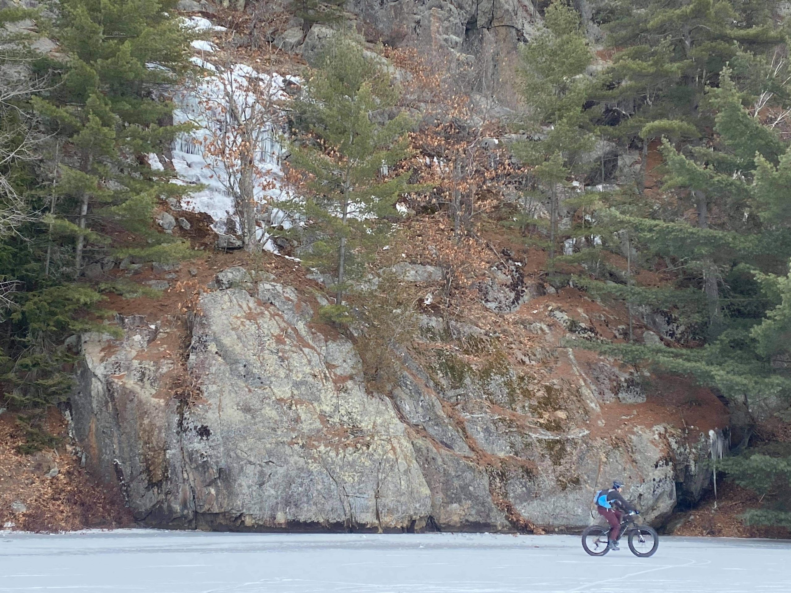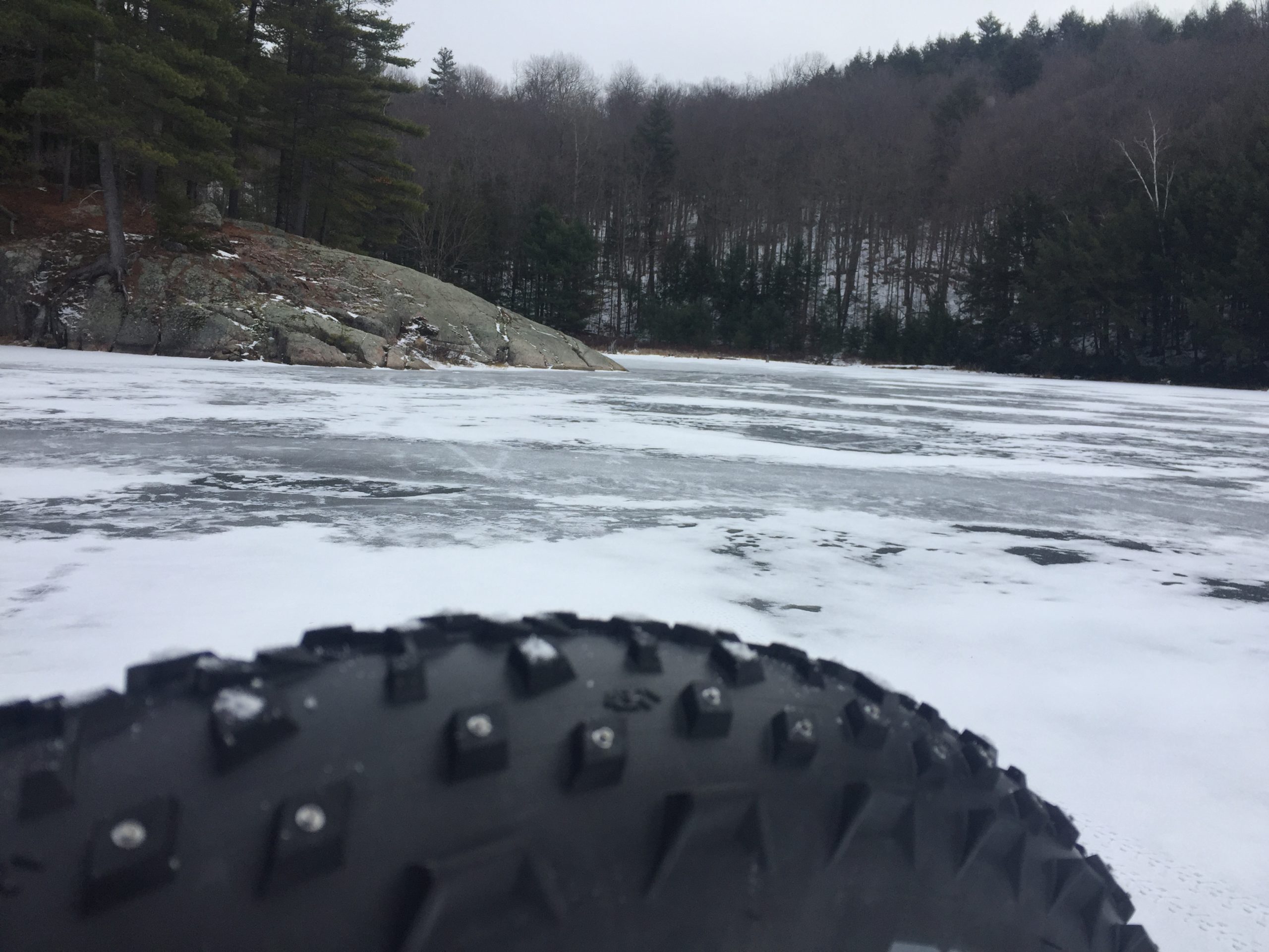December 2020 was a strange month. Usually in Ottawa we have plenty of snow for fatbking and skiing, but the weather was not cooperating. The predicted snow storms turned to rain, followed by cold weather making our rocky trails icy. Luckily, mid December saw a week of unseasonably cold temperatures, and my friends and I started to discuss the thickness of ice on the local lakes. Checking with our trusted sources, which included ice-fishing websites, we decided a golden opportunity was here and it felt like a new beginning for the year ahead.