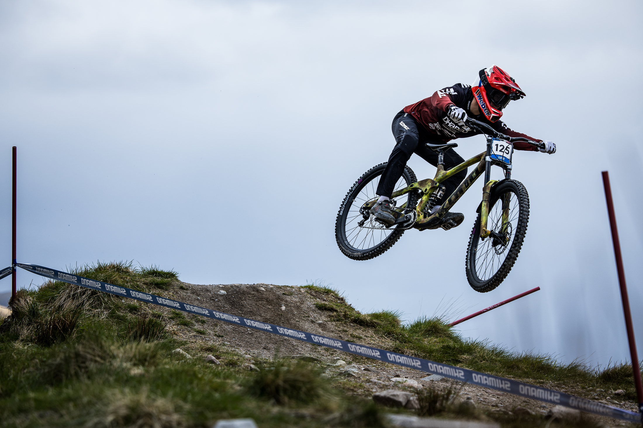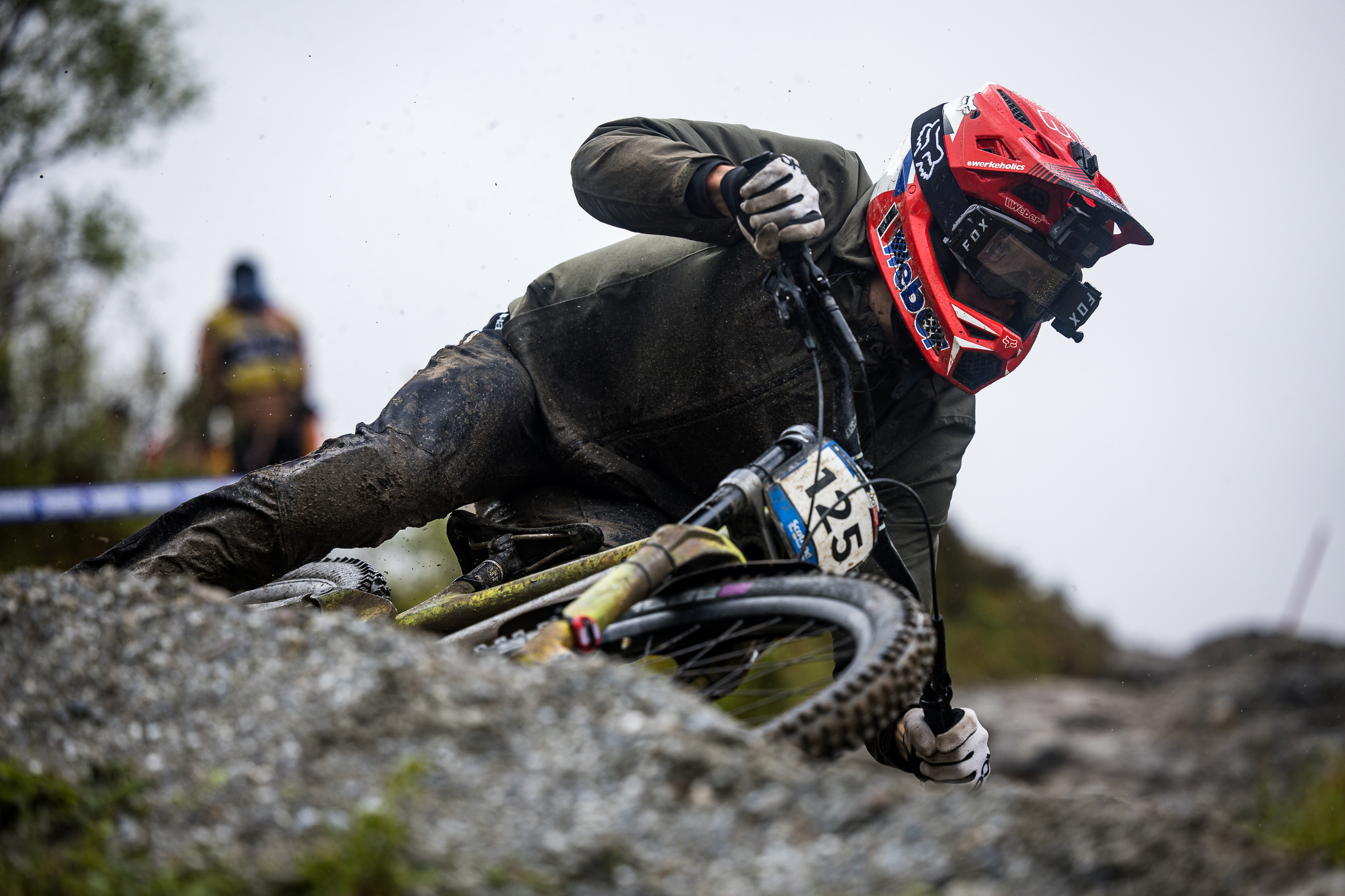 Kona Super Grassroots rider Noah Hofmann made his first trip to Fort William, Scotland, for his second-ever elite race over the weekend. The weather conditions were Scottish, so the track was very challenging. Noah had good training runs and was able to increase his speed in each practice run. On qualifying day, it started raining again as is usual in Fort William, so he had to find a dry place at the top for the warm-up. With a 25 minutes delay, Noah started his qualifying run. At the top, he slipped in one of the corners, which cost him 1/600ths of a second and the chance of qualifying, (the difference between 60th and 66th place). The next World Cup race will take place in Leogang at the beginning of June on Noah’s home soil.