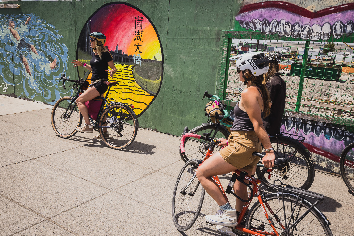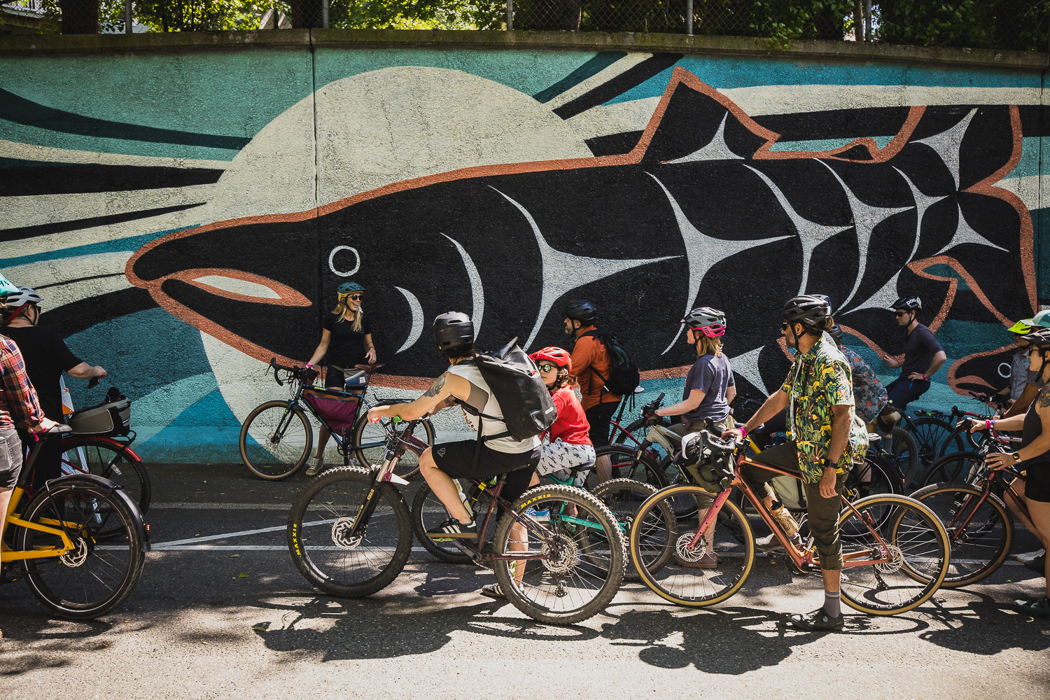 Kona Ambassador Gretchen Leggitt is a NW-based artist and muralist, whose outdoor inspired works include the largest mural in the state of Washington. She led a ride at Northwest Tune Up to show people some of the artistic wonders Bellingham has to offer. Some of which included her own work such as this mountainscape which spans the length of several football fields.