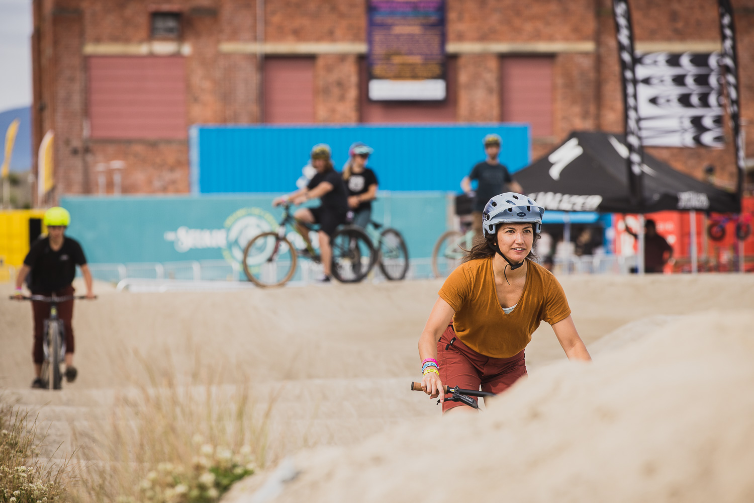 Super Grassroots Rider Kyleigh Stewart led an intro to pumptrack clinic at Northwest Tune Up for riders to feel safe knowing the fundementals of how to progress safely on the pumptrack.