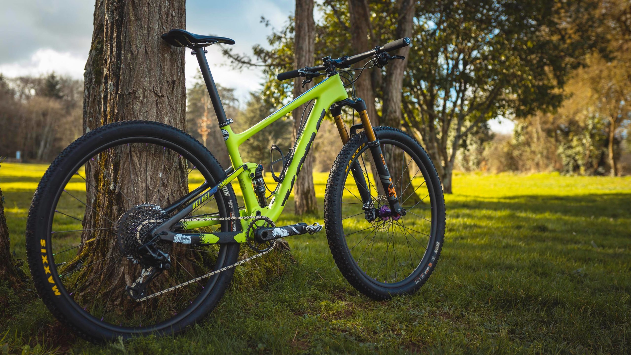 “I switched from steel hardtails (Charge Cooker Hi then SingleBe LaBagarre) to this amazing 2018 Hei Hei Race DL. After I received the bike, I made a few changes : I use Shimano XT pedals (bulletproof and easy to maintain) and switched the tires for a pair of Maxxis Ikon with reinforced casing. I run tubeless with some Squirt sealant. The wheels have been built by Topwheels with Kappius carbon rims, Hope hubs, Sapim D-Light spokes and aluminium nipples. This saved a lot of weight and the gains in terms of precision and reactiveness is huge. I’ve changed the grips with ESI Chunky for more comfort and switched the combo bar/stem/seatpost for some Thomson Components. I changed the saddle for a “good old” Selle Italia SLR.”