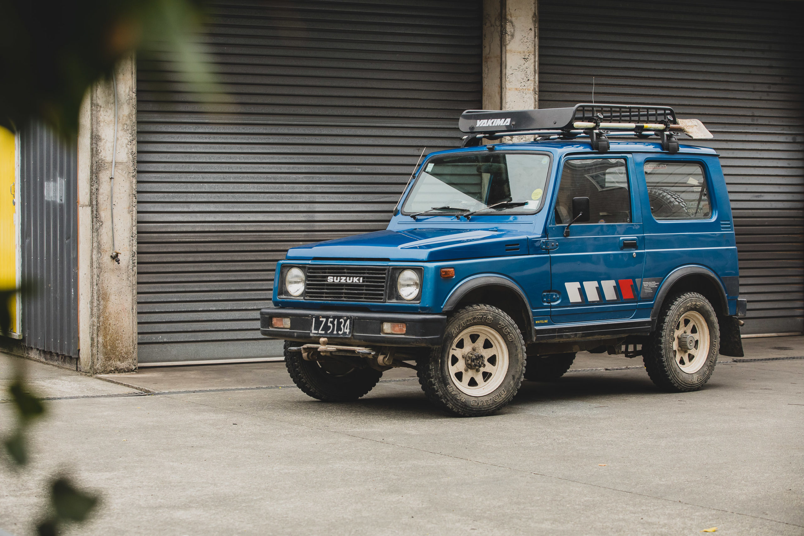 His 1985 Suzuki SJ413 is mostly bone stock but it is sporting a few extras in the way of tow hooks, luggage racks, and shovel mounts.