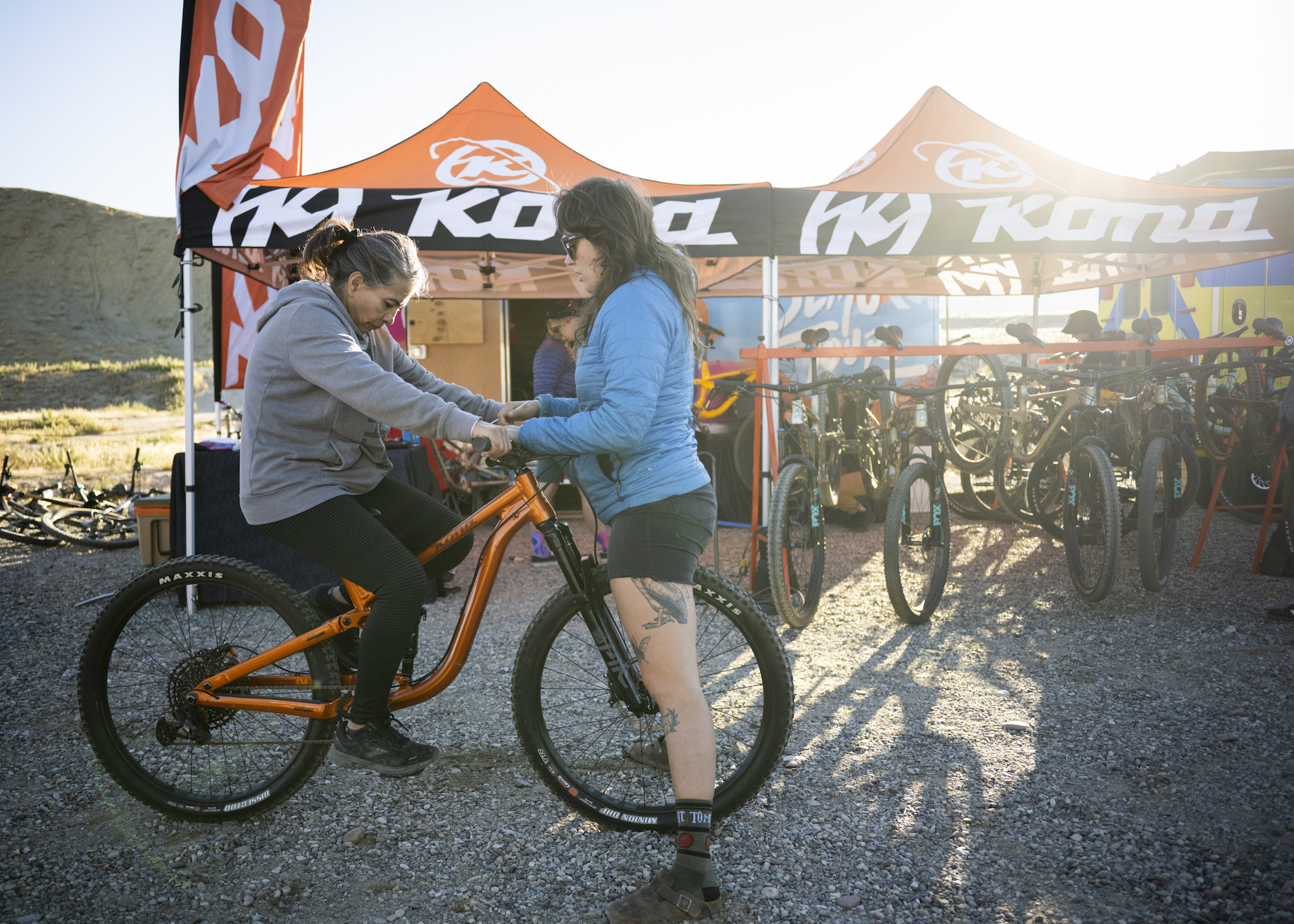 Each person who headed out on one of our demo bikes received a meticulous setup process to ensure they had the best possible time they could have on their Kona bike! This event’s mechanic Erin Sleppy of Belllingham’s Kona Bike Shop (and Wrench Coach for Sleppy’s Cycles) ensured the demo rigs were running smoothly all weekend and was there to help answer any technical questions people had about their bike set up or working on their bikes themselves.