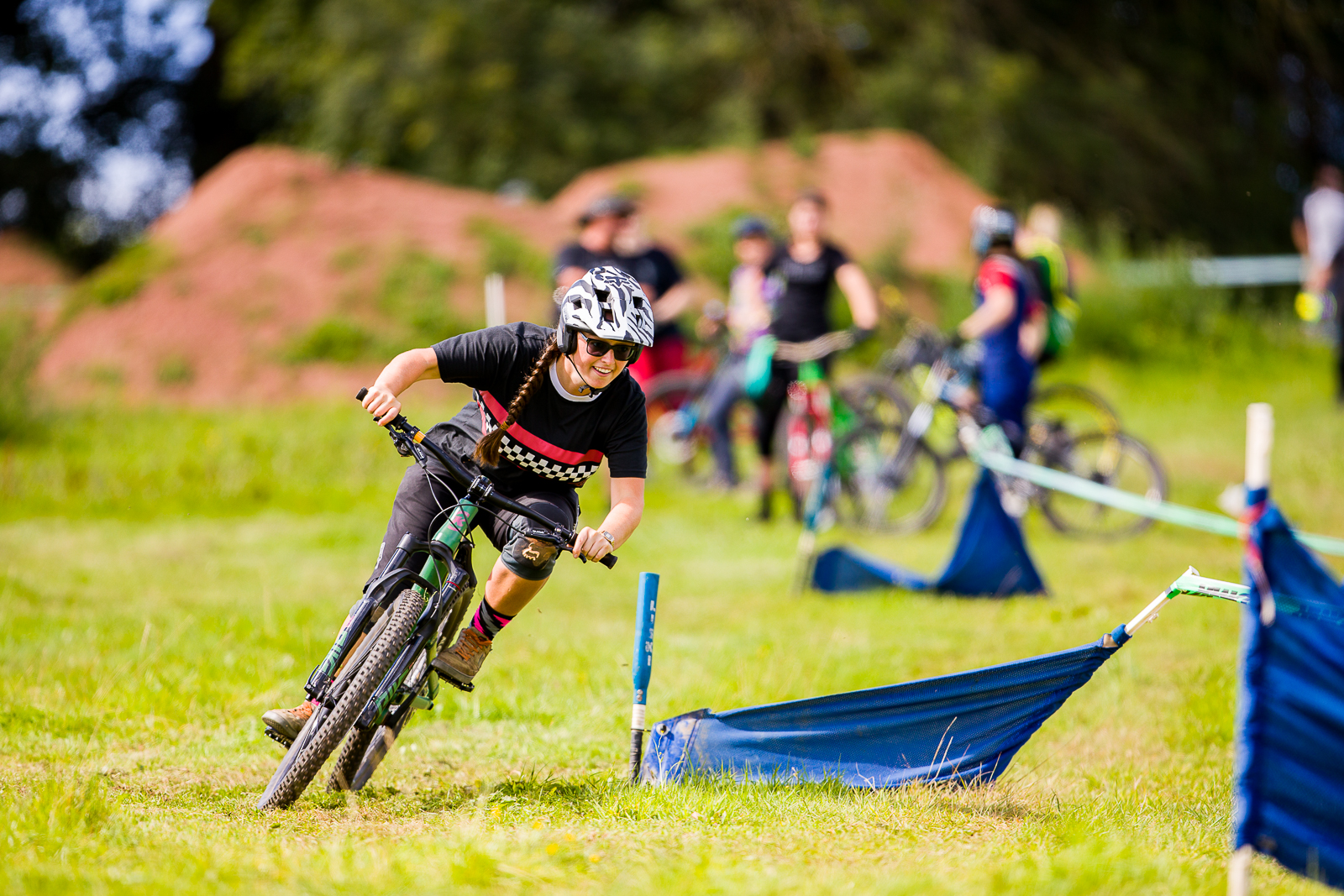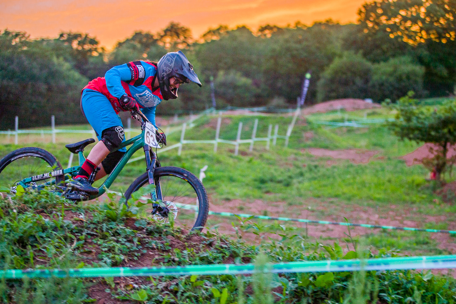 Saturday saw more riders take to the hill to practise on the four cross track in preparation for Sundays race. So to break the day up and add some fun Chris Roberts from Action sports timing set up a 4-corner grass dual slalom. No gate starts over here though, with an old school le mans start to keep it a level playing field for everyone. With 34 men entering, 9 women and 13 in the rippers category it was sure going to be a great laugh. Being from a BMX background flat grass corners are not my strong point, but I put the flat pedals on and gave It my best finishing 2nd in quali, getting myself to the final. And just loosing out to Natasha Bradley, who took the women’s win. In the men’s Scott Beaumont took 2 for 2 taking the win in the men’s dual. Rad little Billy Pugh took the rippers win. The day ended with a brilliant golden hour riding the flow line in the sunset.
