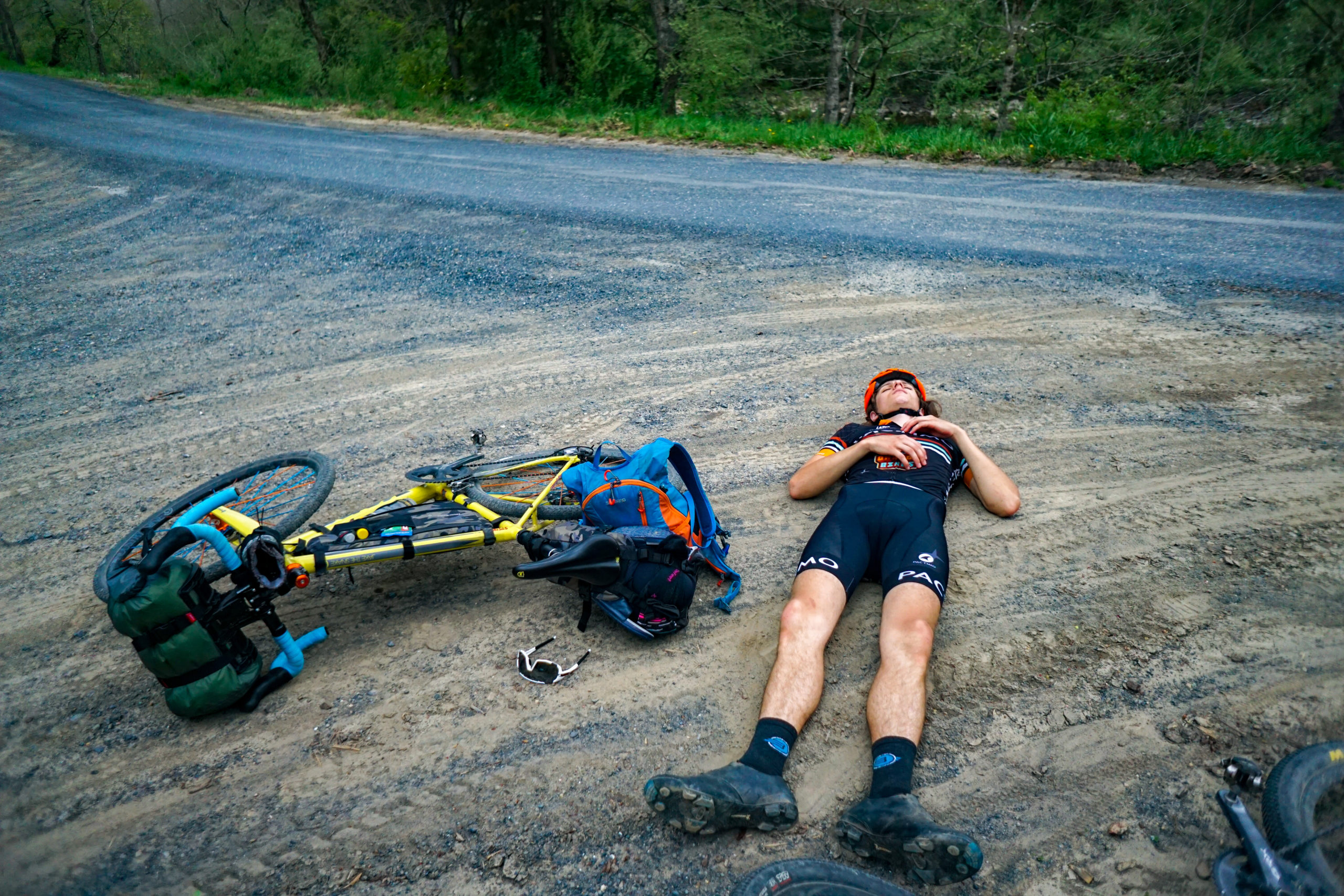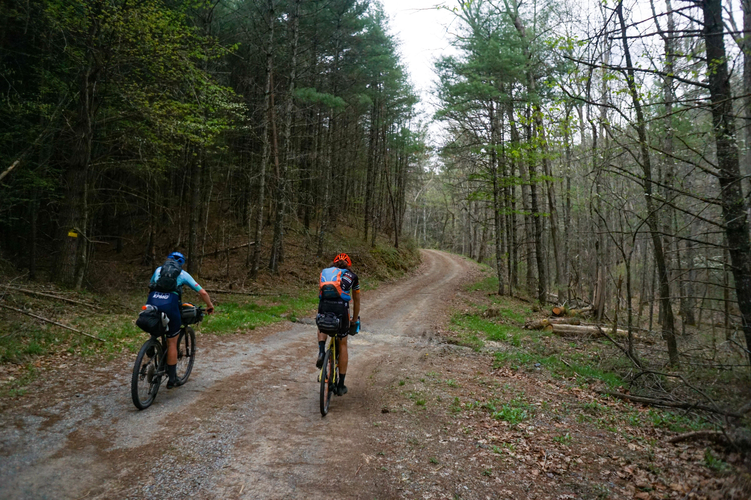 From here it was up hill 9 miles. We started on flat, mint gravel, farm roads before passing a chicken farm and heading straight up an old forest service road. Everything was going swell until we hit a curious intersection. I deduced that we actually had to get on single track and this sent the groups anxiety through the roof. I should add we were about 5hrs in at this point…