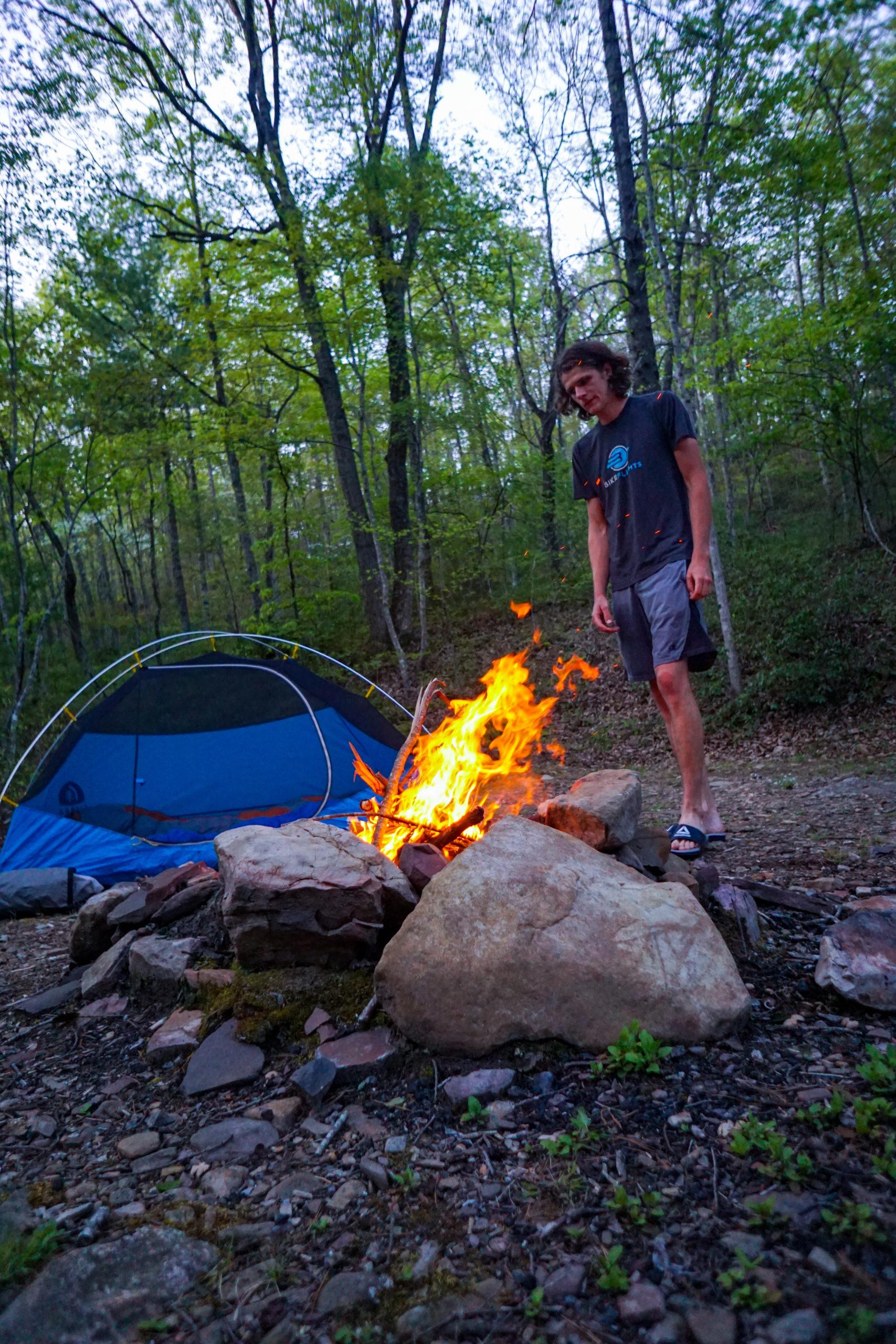 By the time we got there everyone was at their wits end. No one said much that night as we pulled into camp except that they figured since the first day was a lot of road, and took us 5.5 hrs, the subsequent days would likely take us even longer. Spencer laid on the ground, Erica stewed, Emily just wanted to sleep, and I built a fire, for morale. Camp fires are good for morale.