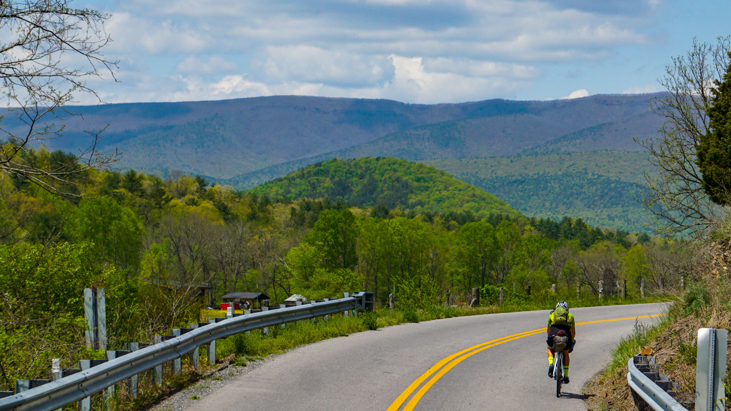 The final day couldn’t have started better. Sure we were woken the night before at 11pm by a state trooper looking for rambunctious teenagers causing a ruckus, but the hot breakfast at the general store remedied all that and had us eager to knock out this first 25 mile, gradual, climb up to Reddish Knob.