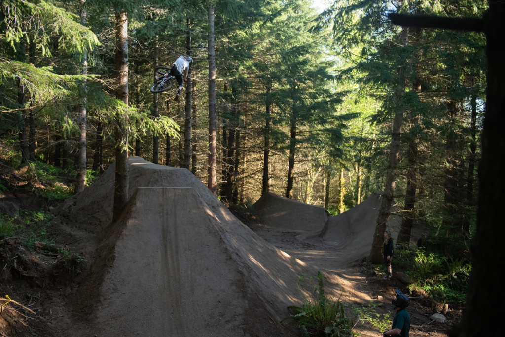 If you have been to Galbraith Mountain in Bellingham, WA, chances are you have ridden down a trail that was created by ShireBuilt, a trail building company made of local riders and trail diggers that teamed up to build some of the best mountain bike trails in the PNW. One of Galbraith’s most popular trails, Mohawk, was built by the crew a year ago and quickly became a local favorite. Full of flowing lines and jumps that get progressively bigger as you descend, Mohawk has become one of the signature jump trails in Bellingham. The bottom section was just rebuilt and features a few larger jumps and a hip fit for Shakira.