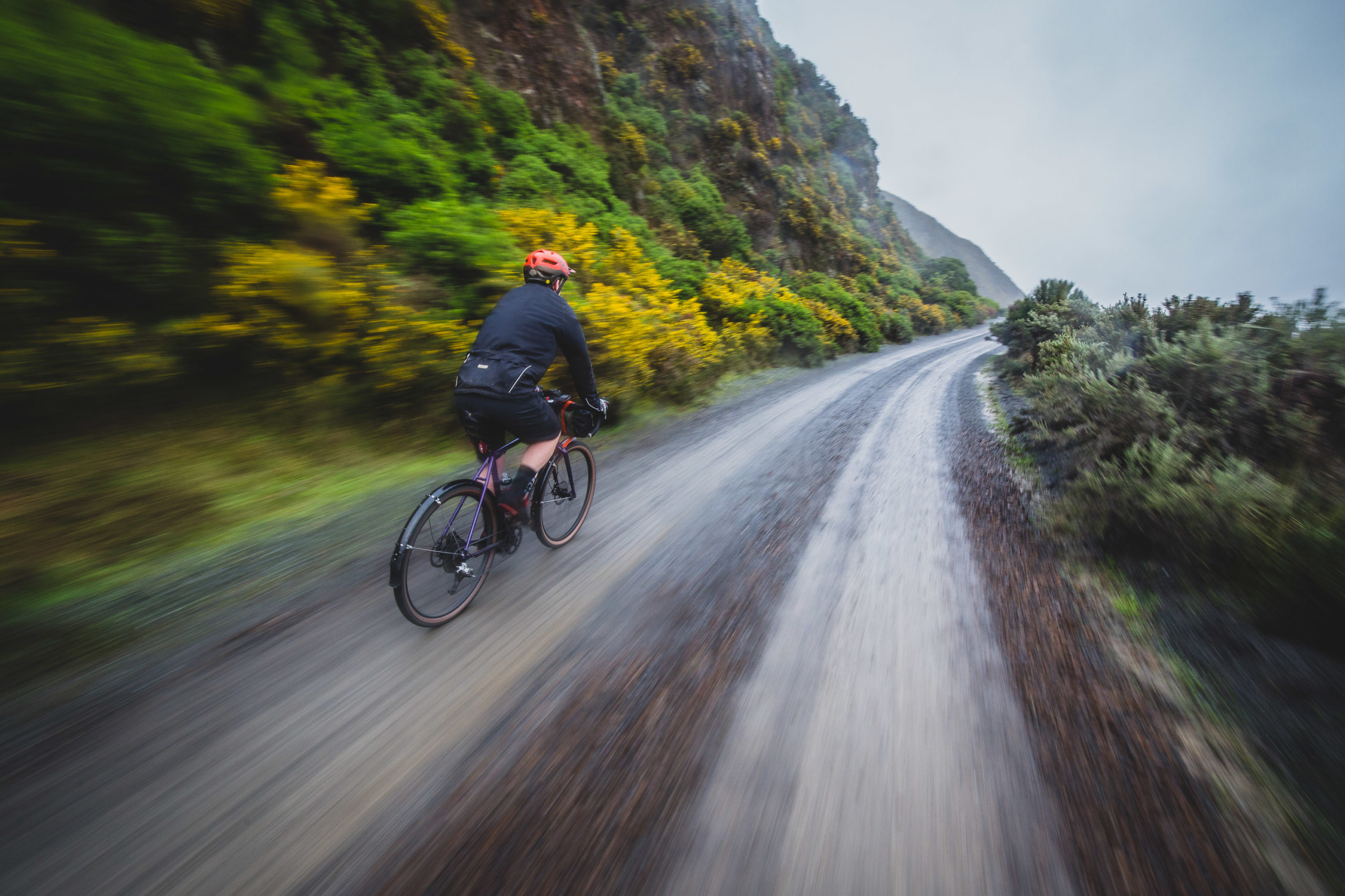 The inclement weather and my camera did not get on, although I’d packed light, covered my camera bag in a rain jacket, and even packed a chamois to suck water off the camera body it gave up the ghost around 40km in. At first the autofocus stopped, then it refused to allow me to change manual settings, and finally, it decided it wouldn’t even fire. Despite some nice jackets and wet weather riding gear, nothing was stopping the water. By the 50km mark everyone was soaked to the bone, surprisingly though, thanks to the low density cloud, the temperatures weren’t that low, and while conditions were pretty darn miserable, it was good knowing they could have been far worse.