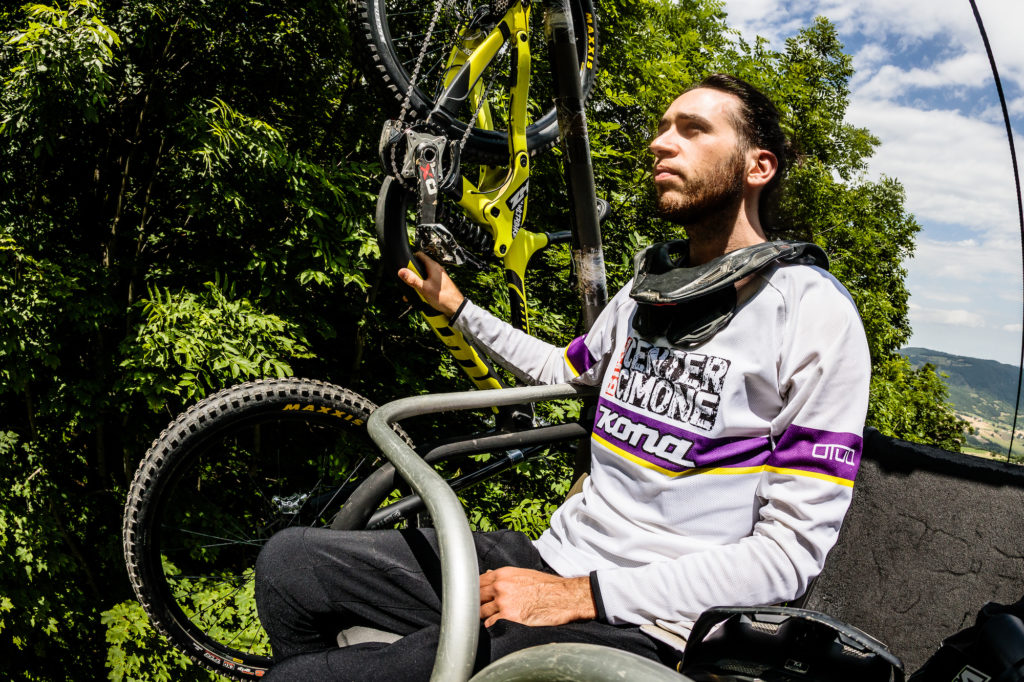 “The national championship is the most important race of the year for me and this year was hosted and organized by our team Kona Bike Center Cimone in the beautiful Sestola. When Alex told me he would have come to follow me all weekend and to document the race with his photos, I got even more excited! The first day of practice went smooth on a very dusty and loose track. I felt good and my Operator 29” was very fast. Quali day started differently from the day before after some heavy rains overnight, and the track became so muddy and slippery. I left for my qualification run pretty relaxed and convinced of my possibilities. I was riding clean until I hit a root with my front wheel and I got stuck in the middle of a steep corner. I finished my run in 15th position but I knew the pace was good, we just had to put it all together. At the end of the day, another storm hit the city, and the nerves and mental strength of the riders got tested even more. On race day, since the first hours in the morning, the tension got very high, as my whole family had come to see me and I wanted to prove at all costs that I could fight for the national jersey.