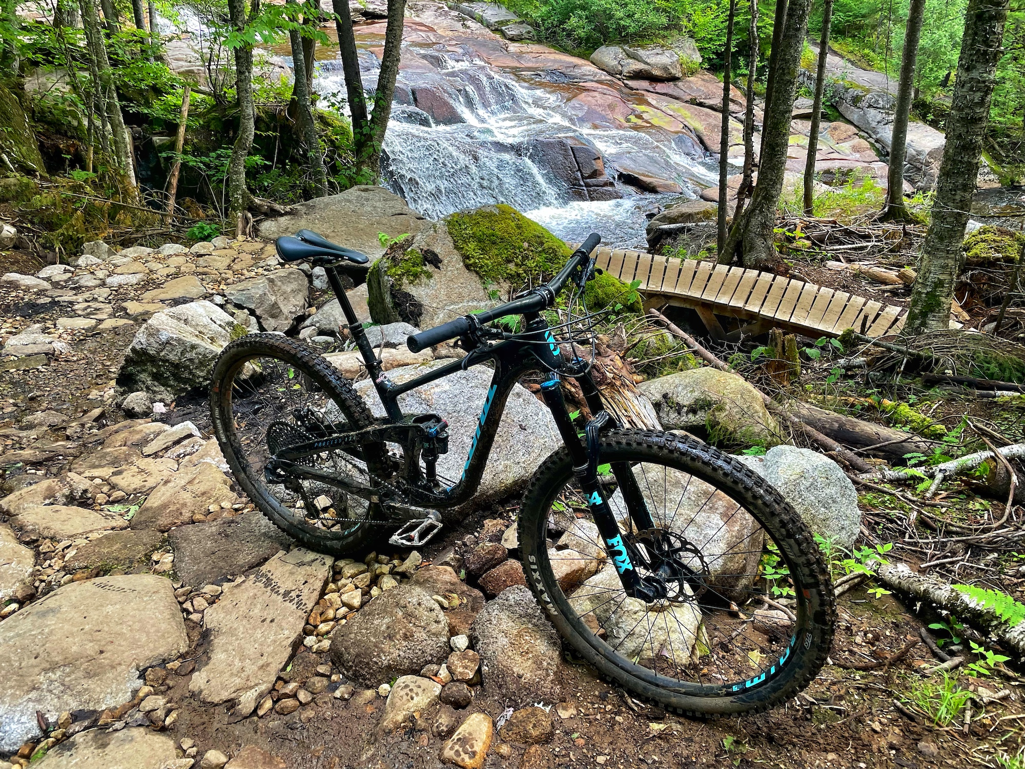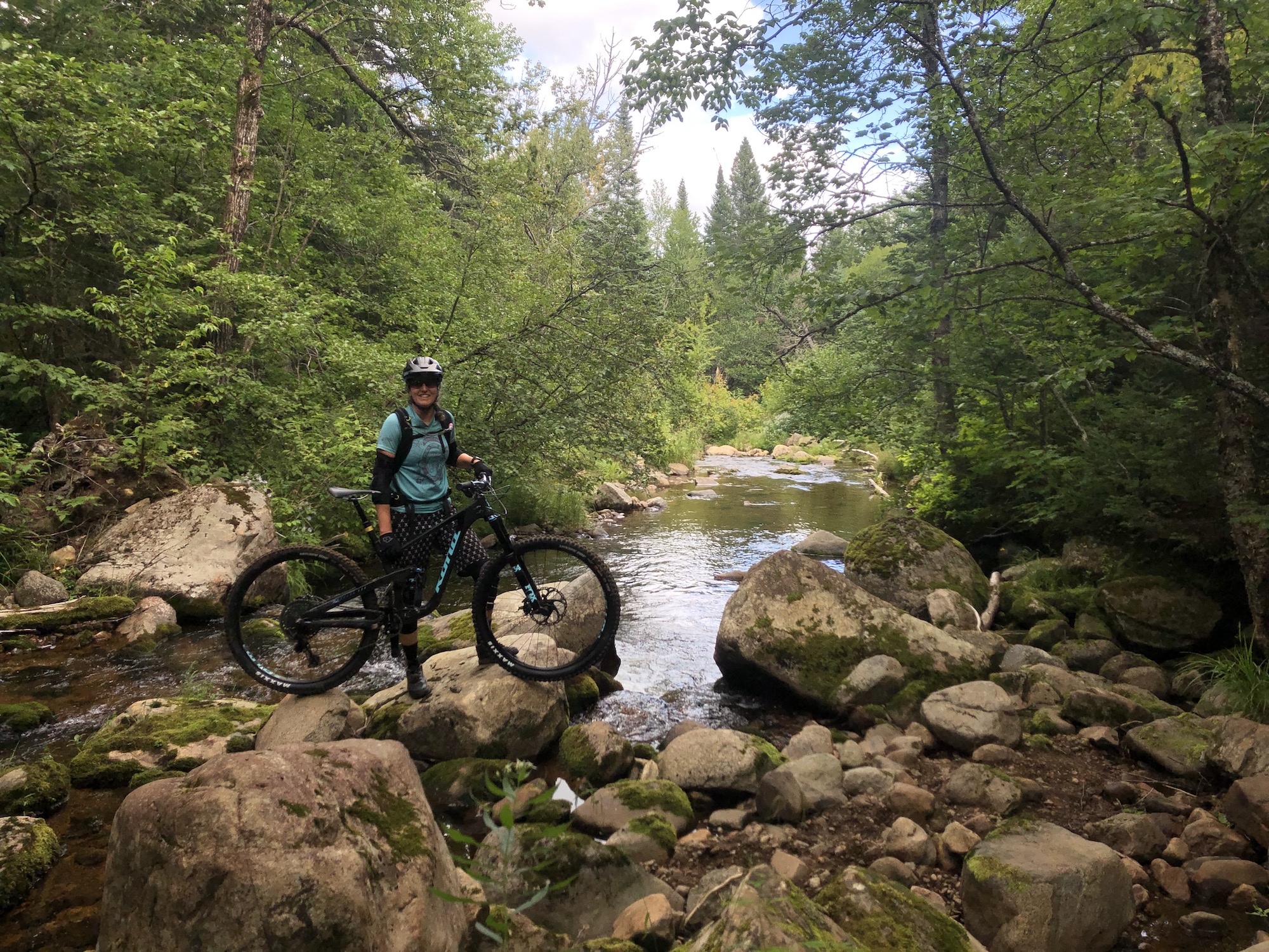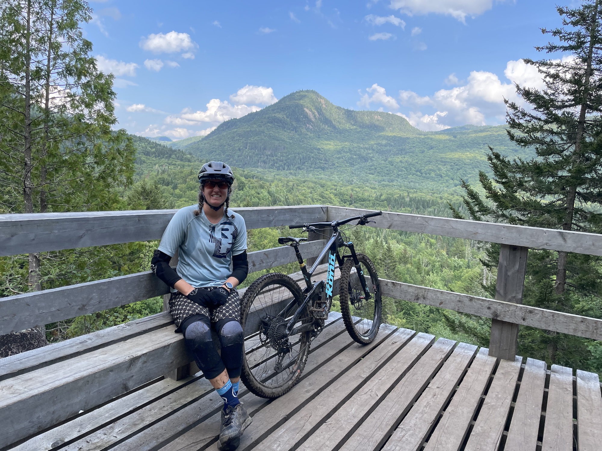 Vallee Bras du Nord, the Shannahan sector is always a favourite since the terrain is so big and has a remote feeling, especially since there is no cell phone reception. I always seem to hit it after steady rains, so the technical terrain keeps you on your toes when it is wet and muddy. There are endless waterfalls and scenic vistas. Luckily, right before losing the cell reception one of the trailbuilders called me to let me know the new Neilson East climbing trail was rideable, but not open to the public yet. Most of it was well compacted and beautifully built, but a few bridges were still missing so we needed to do a few hike-a-bikes!