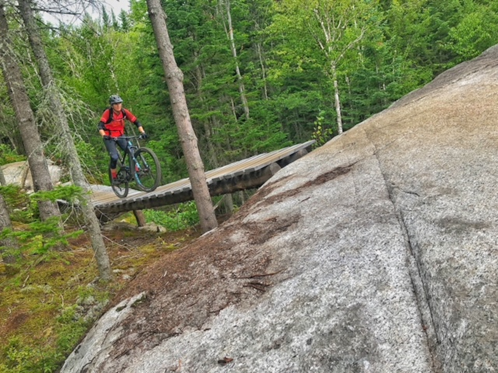 Sentiers Du Moulin was my favourite riding area before, but now with the expanded Maelstrom sector it is absolutely incredible. There is no shortage of rock slabs and rocky, technical terrain. The whole sector was so good, it’s impossible to have just one favourite trail. I also loved all of the bridge and rock combinations – it certainly makes you pay attention when you are riding!