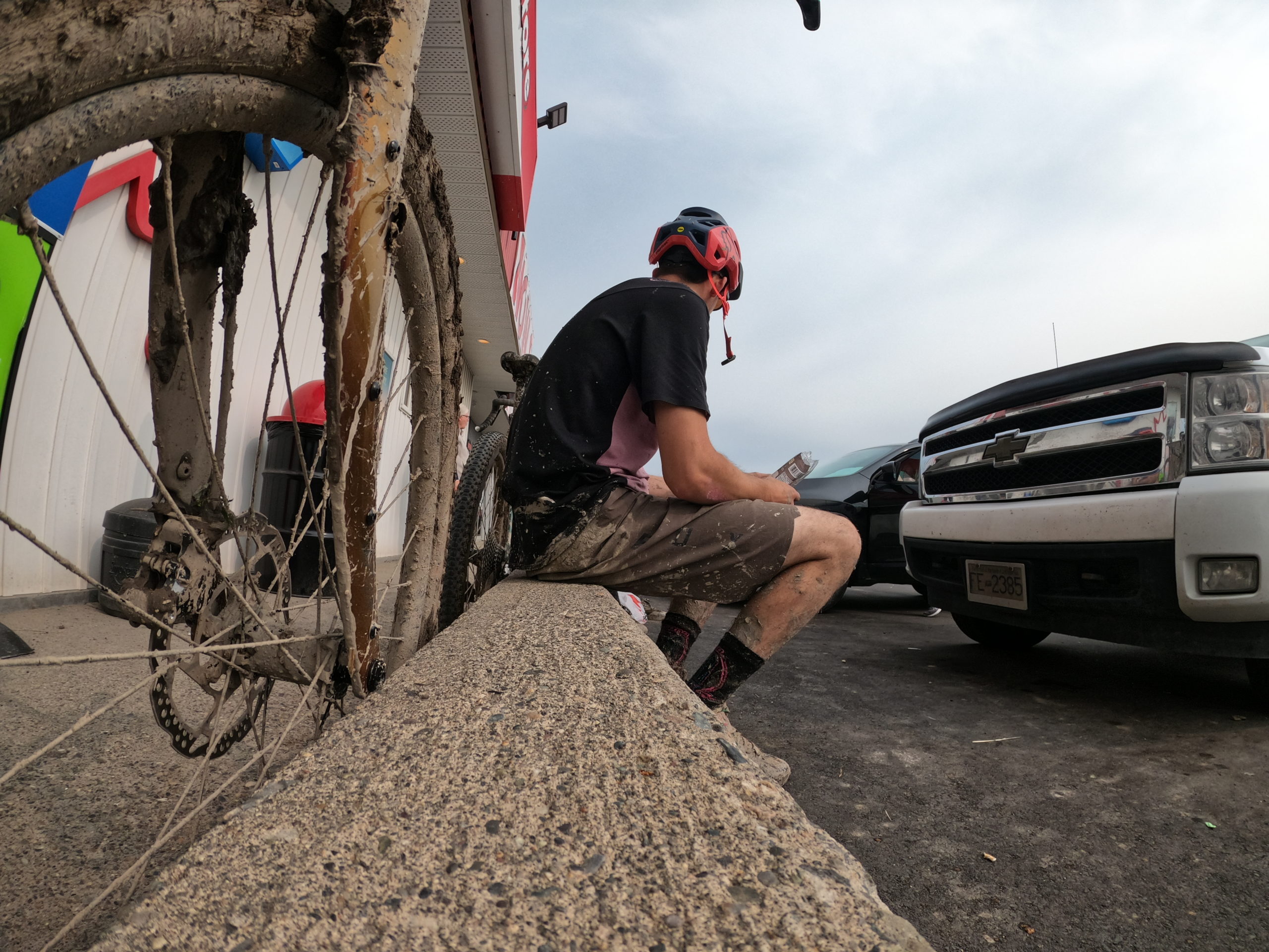 Back on some pavement and completely out of water and snacks. We were happy to stop at the nearest gas station on the highway to grab a gatorade and donuts, before we continued the last bit of our ride home.
