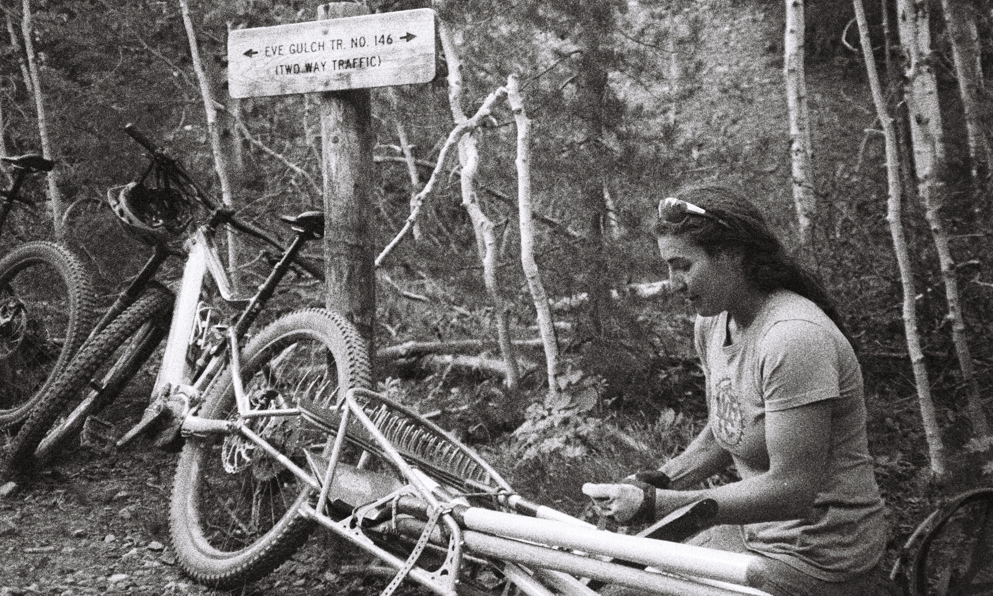 Armed with shovels, rakes, loppers and saws, our protagonists enter into the woods. They’ve converged on a common cause- the annual buffing of a beloved local trail. Most have accessed via mountain bikes of all shapes and sizes- each bicycle a caricature of themselves, their Batmobiles.