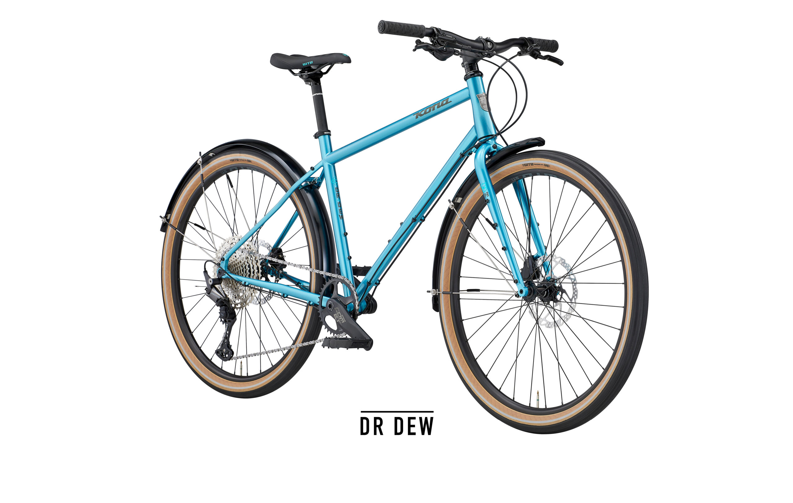 The Dr is in. Sophisticated, smart, and well-equipped. Yes, we’re talking about a bike. The Dr Dew features a sleek Cromoly Butted frame in a gorgeous sun-catching blue. A 12-speed groupset keeps shifting ultra-smooth and is geared for any big hill the city may have. Powerful hydraulic disc brakes keep the speed in check, and puncture-resistant 650x47c tires keep the potholes at bay. The Dr Dew is efficiency and style rolled into one killer flat-bar commuter.