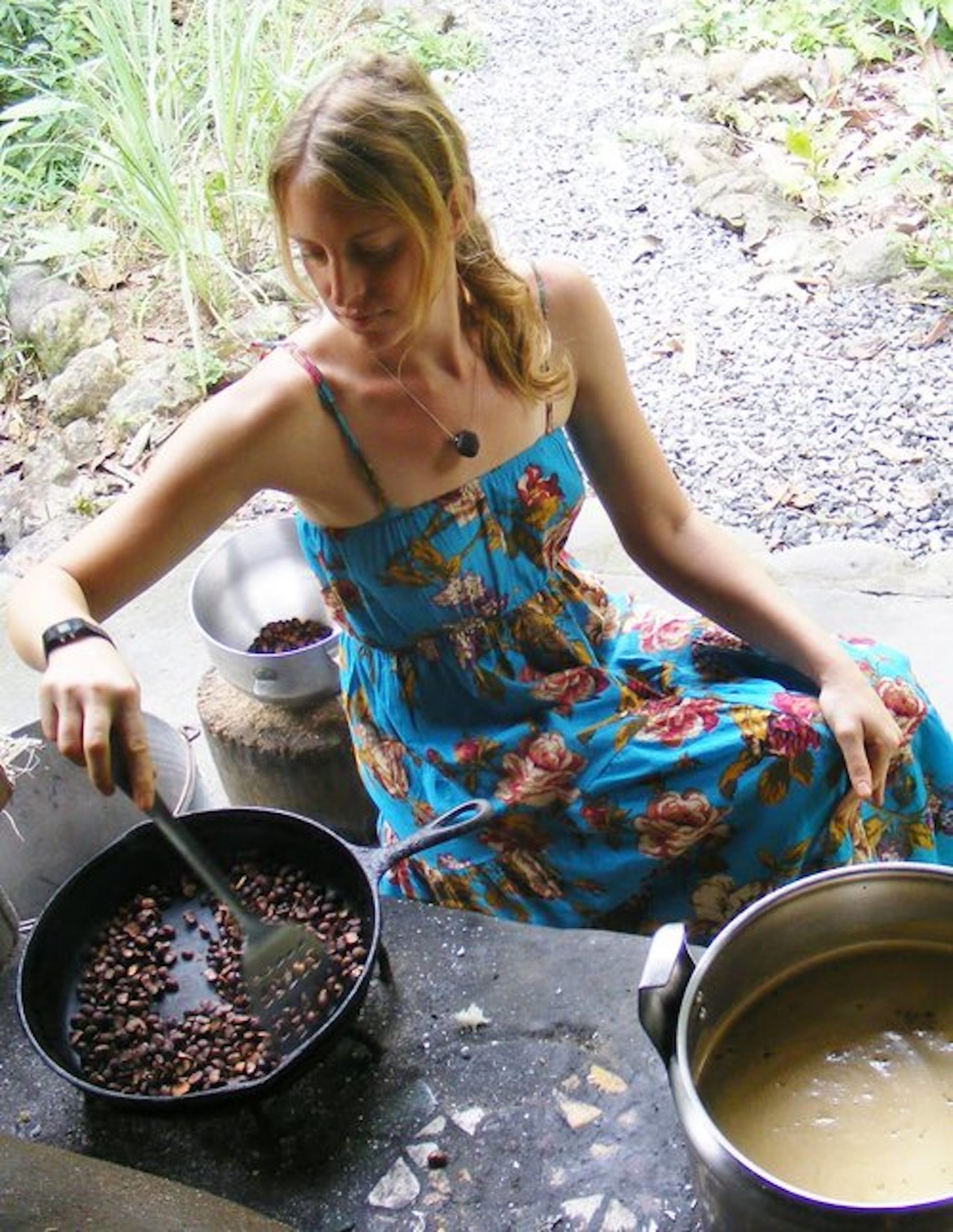 Every time I worked the breakfast shift, I volunteered to start the fires in the rocket stoves. I’d fill the stoves with wood and paper, light them up, and coax the flames to life. Then I’d crack about 100 eggs, pour them in cast iron skillets, and start scrambling. Between the two methane burners and the rockets, we often cooked breakfast for up to 50 people. In rainy weather the fires were a challenge to light, but they also offered a respite from the chaos of the central kitchen. I enjoyed sitting quietly, tending the flames.
