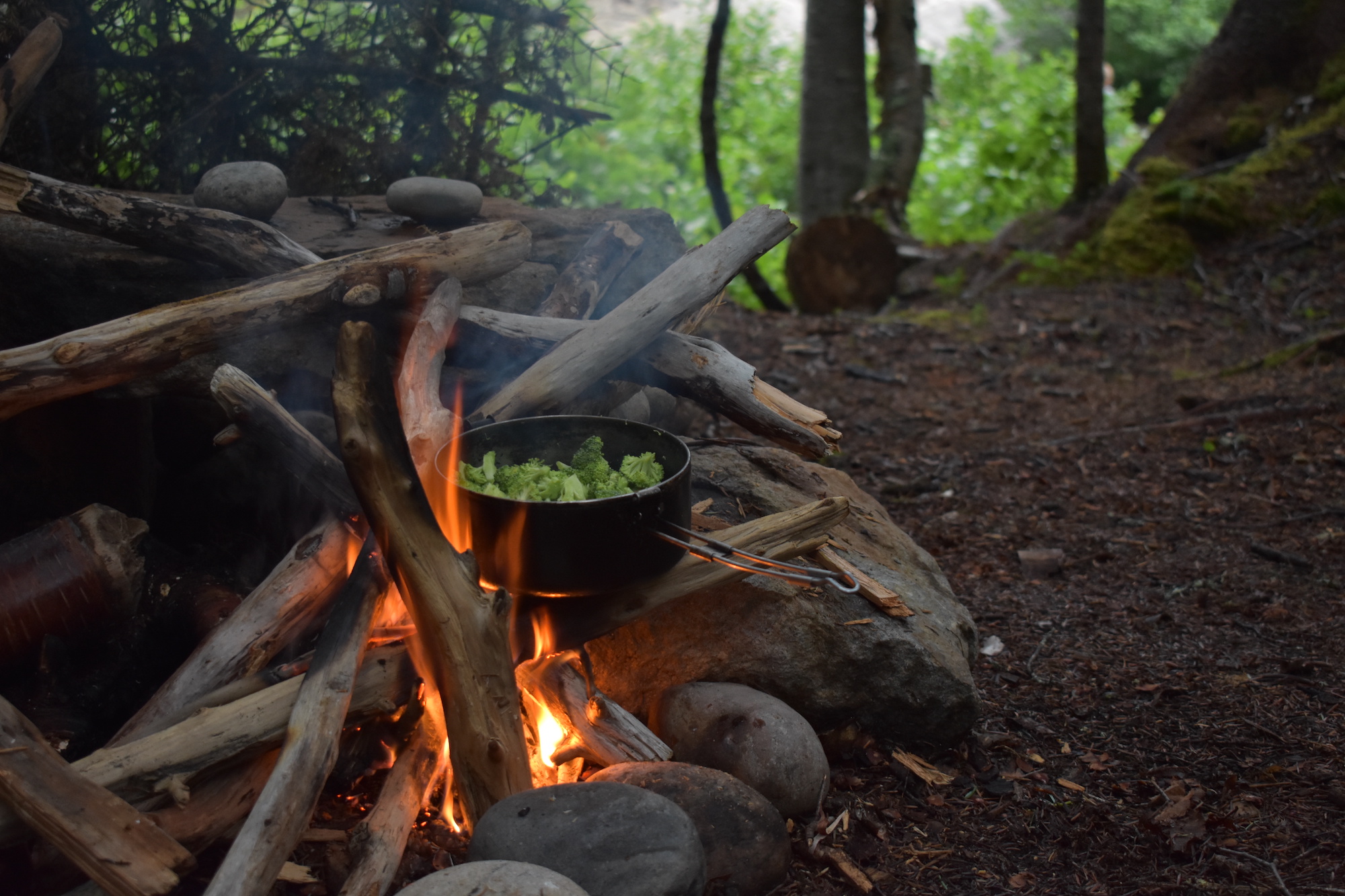 When I’m camping, I often see people light a big fire in the fire pit, then turn around and light their propane stove. It always strikes me as ironic. Why turn on a stove when you already have a fire? I think this is really a cultural phenomena. In the United States, people just aren’t used to seeing fire as a cooking source.