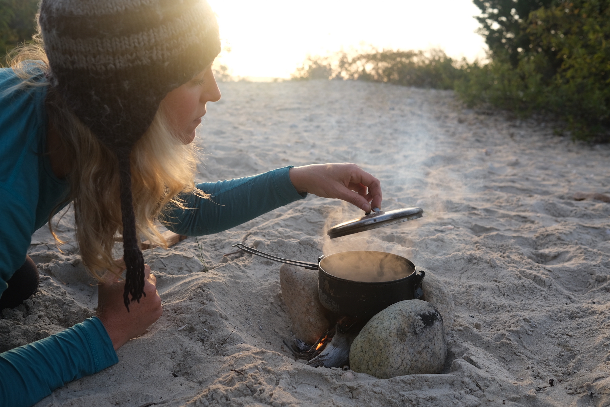 On most of my long bike trips, I’ve cooked my food on campfires. I enjoy the process of collecting wood, building the fire, coaxing the flames. I usually don’t bother to bring a stove. Check out Feasting Without A Stove and How to Cook with Fire for some of my meal plans and processes.
