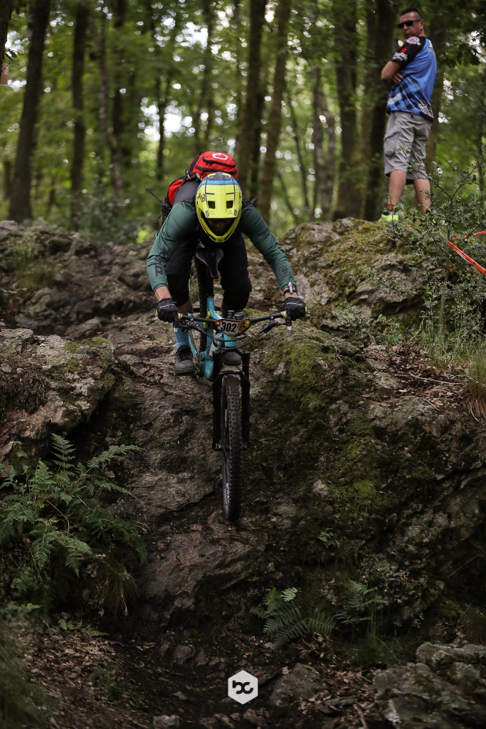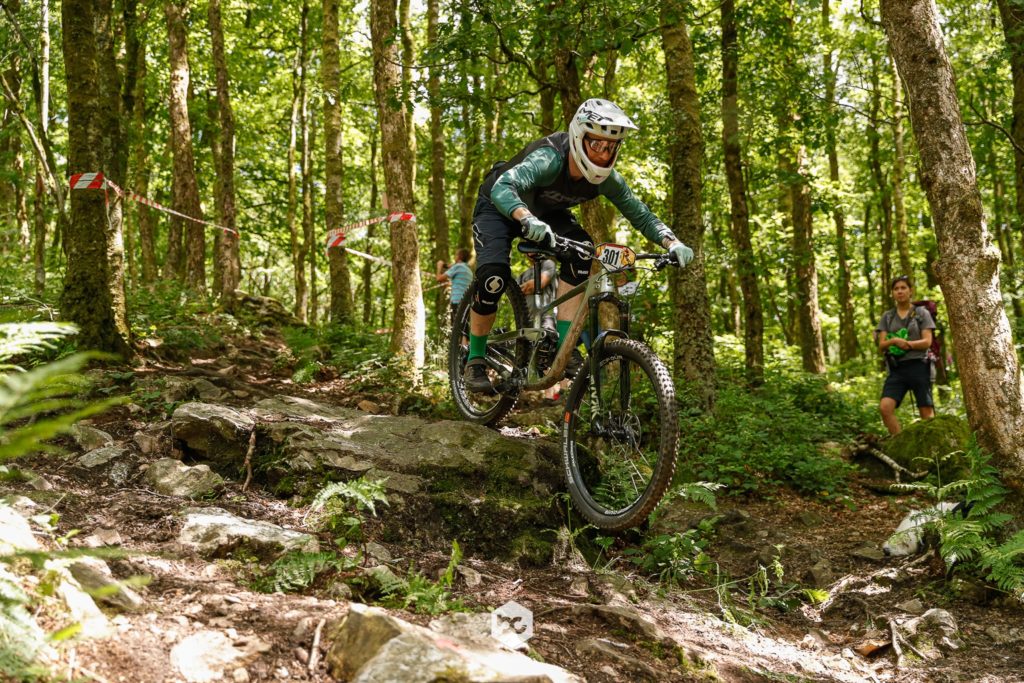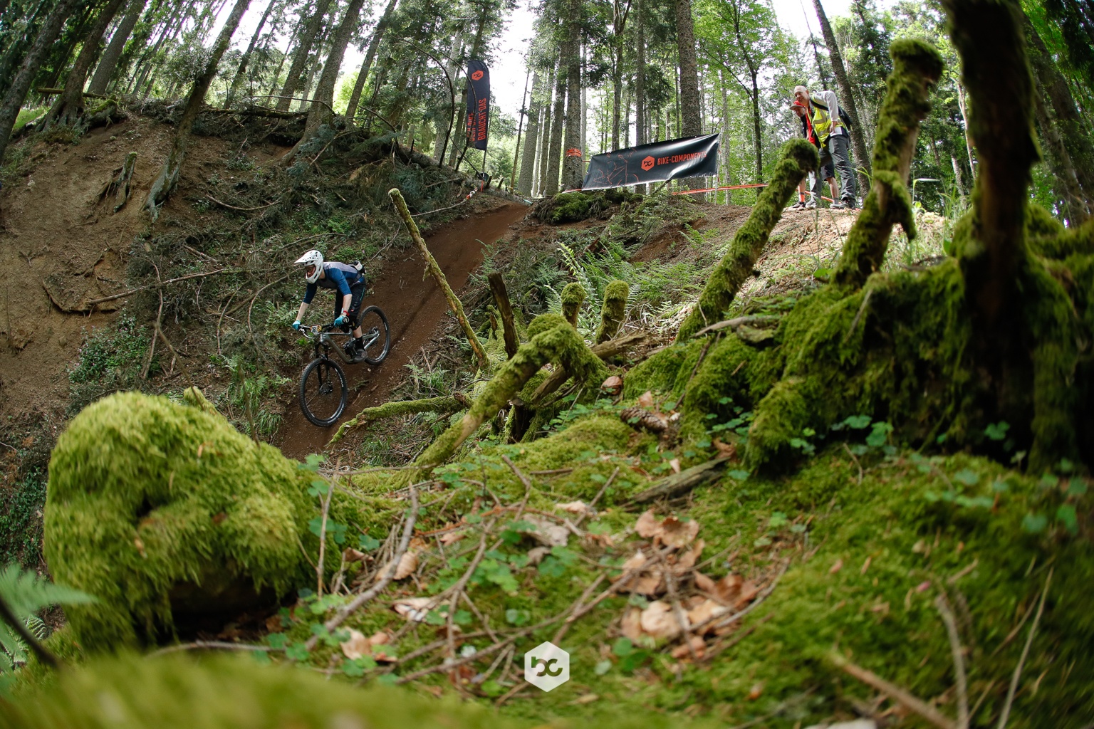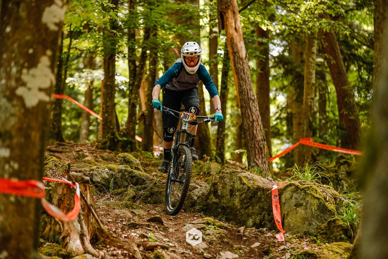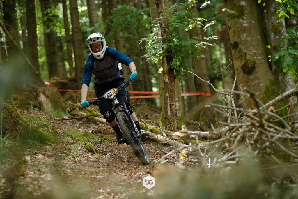 First race in Sainte Marie were a one day race with 37km and 1440 hm and, as every event in this series, it is a fully blind race. No training just racing which make it even more challenging. Well organized, dry and sunny the riders started as they want in a defined time period for each stage with a gap of 20sec. At the beginning of Stage 1 countless flowy fun curves followed one after the other in roller coaster style, followed by small and large bomb craters, rock gardens and natural berms. As the length of the stage increased, the lower part became steep and fast and finally ended on the transfer way to Stage 2.