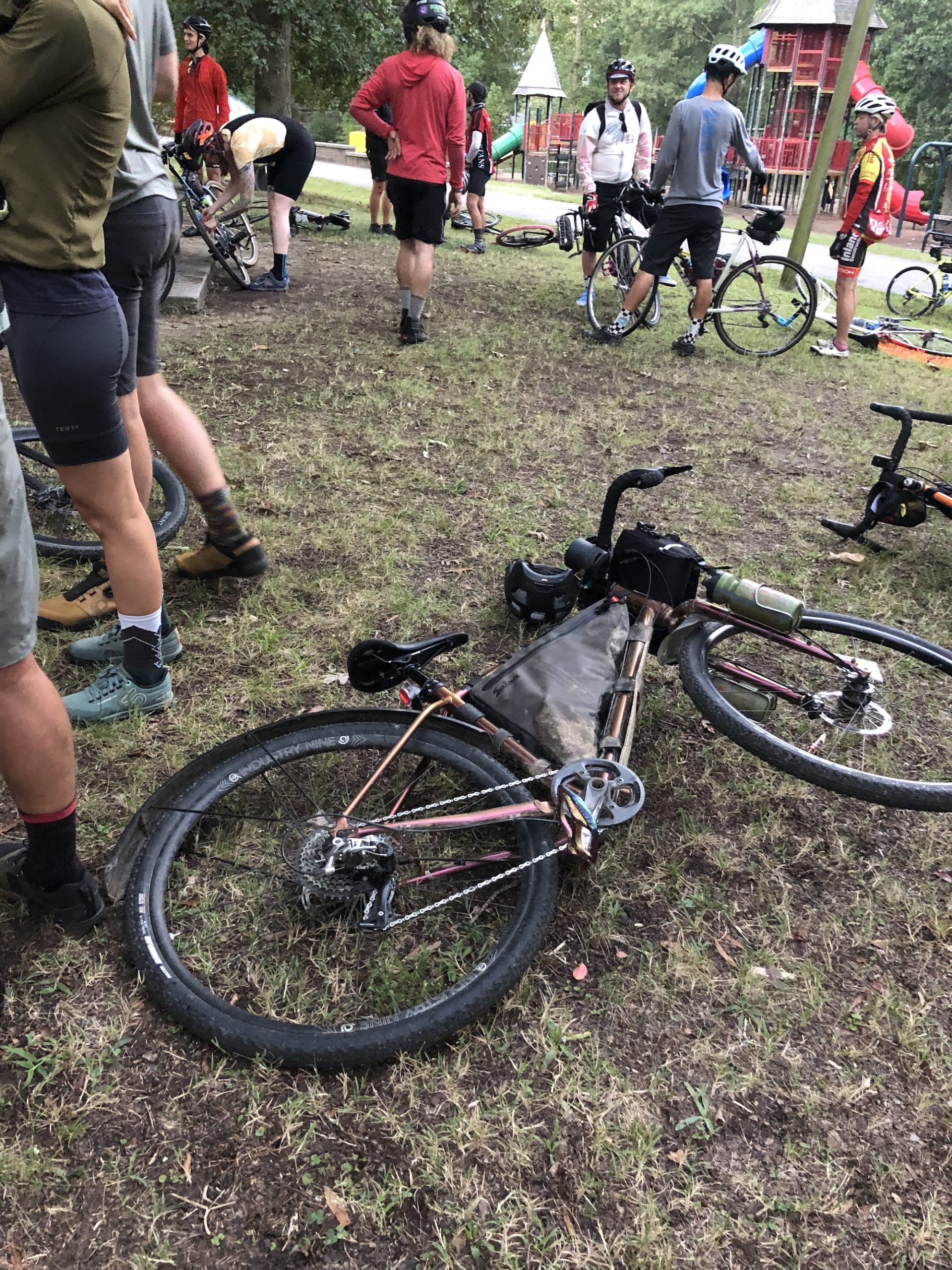 Once our cravings are satiated (for the moment) we roll out for the final leg of the ride. We are pretty quickly back on the greenways of Chapel Hill, heading northeast towards Durham. In years past this bit has typically been a race against fading daylight, but the earlier start this year had us riding it with plenty of time before dark. It always turns into a bit of a scramble at this point as people are feeling the rush of nearly being done and ready to get off the bike. As we roll back into the park we started at nearly 11 hours earlier, everyone is in good spirits and ready for more food and beverages. I ended up with 204 kilometers this year and I’m already looking forward to the next long sweet ride!