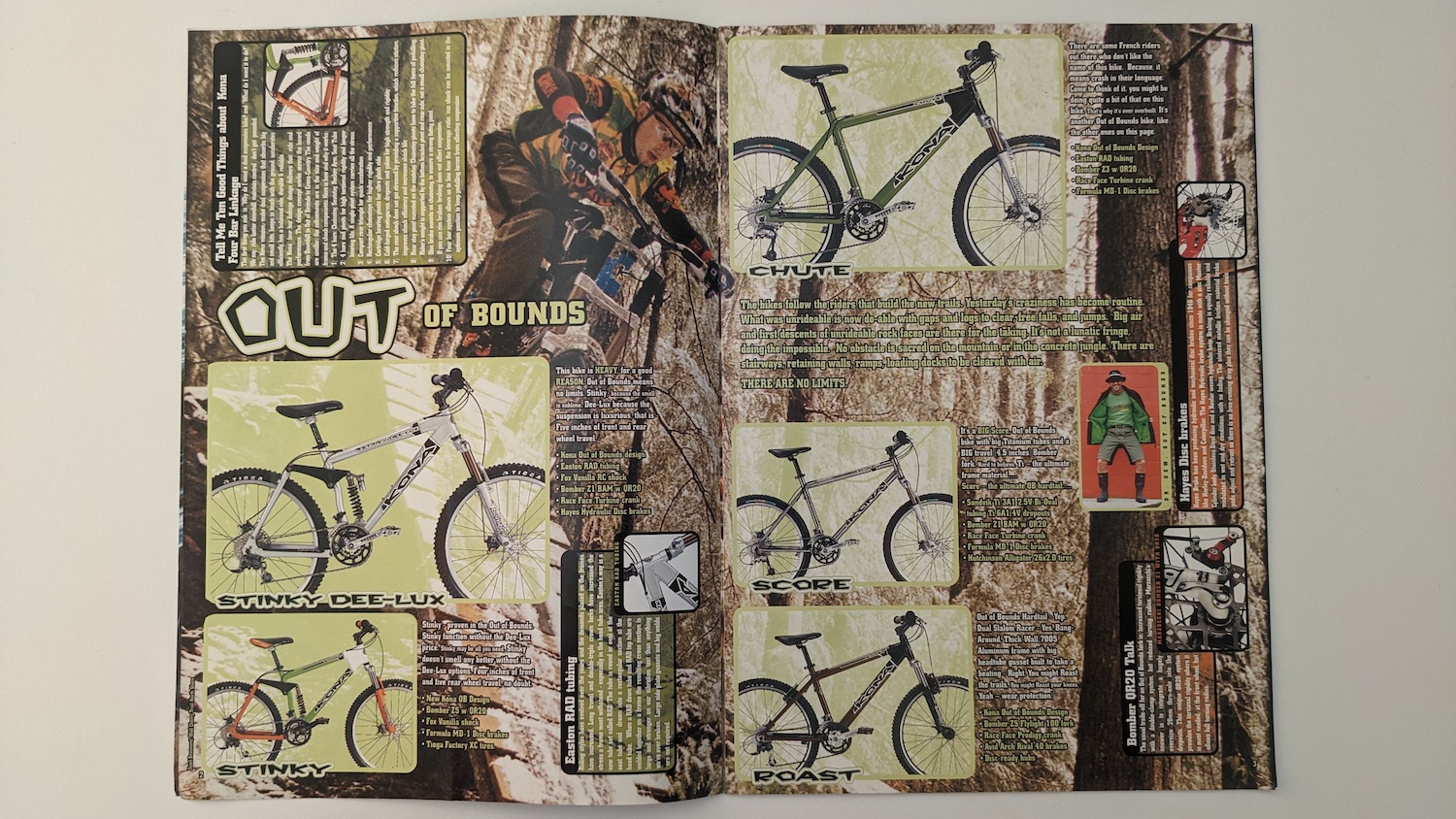 This week we’re celebrating Pip’s Kona legacy. Today we’re focusing on Pip’s Score. Appearing for one year only, perhaps this was Kona’s most extravagant titanium bike. By the turn of the century, the out-of-bounds and free-ride movements were in full swing. Hardtails with slacker head-tube angles, longer top tubes, and more up-front travel (up to 120mm) were in demand.
