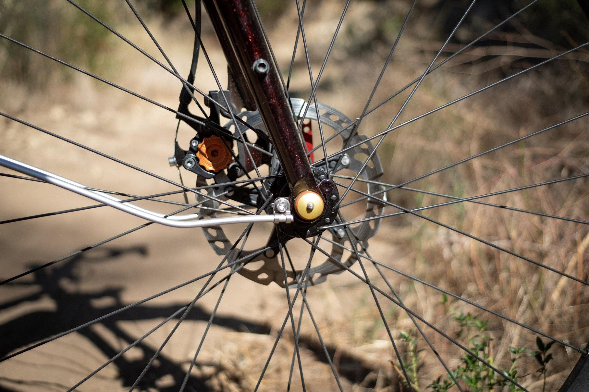 “The Kona Sutra itself, despite the tires and the overall weight, handled well. There were some slight mishaps involving the too-low-for-this-use bottom bracket and the toe overlap. These problems became more manageable once I slowed down a little and found the right lines. Once on level ground, or even going downhill, the bike seemed to roll over almost everything. There were sections that were rutted and filled with cobble-sized rocks that seemed to pose little problems. Did I get some air on the way down? Why yes… yes I did.”