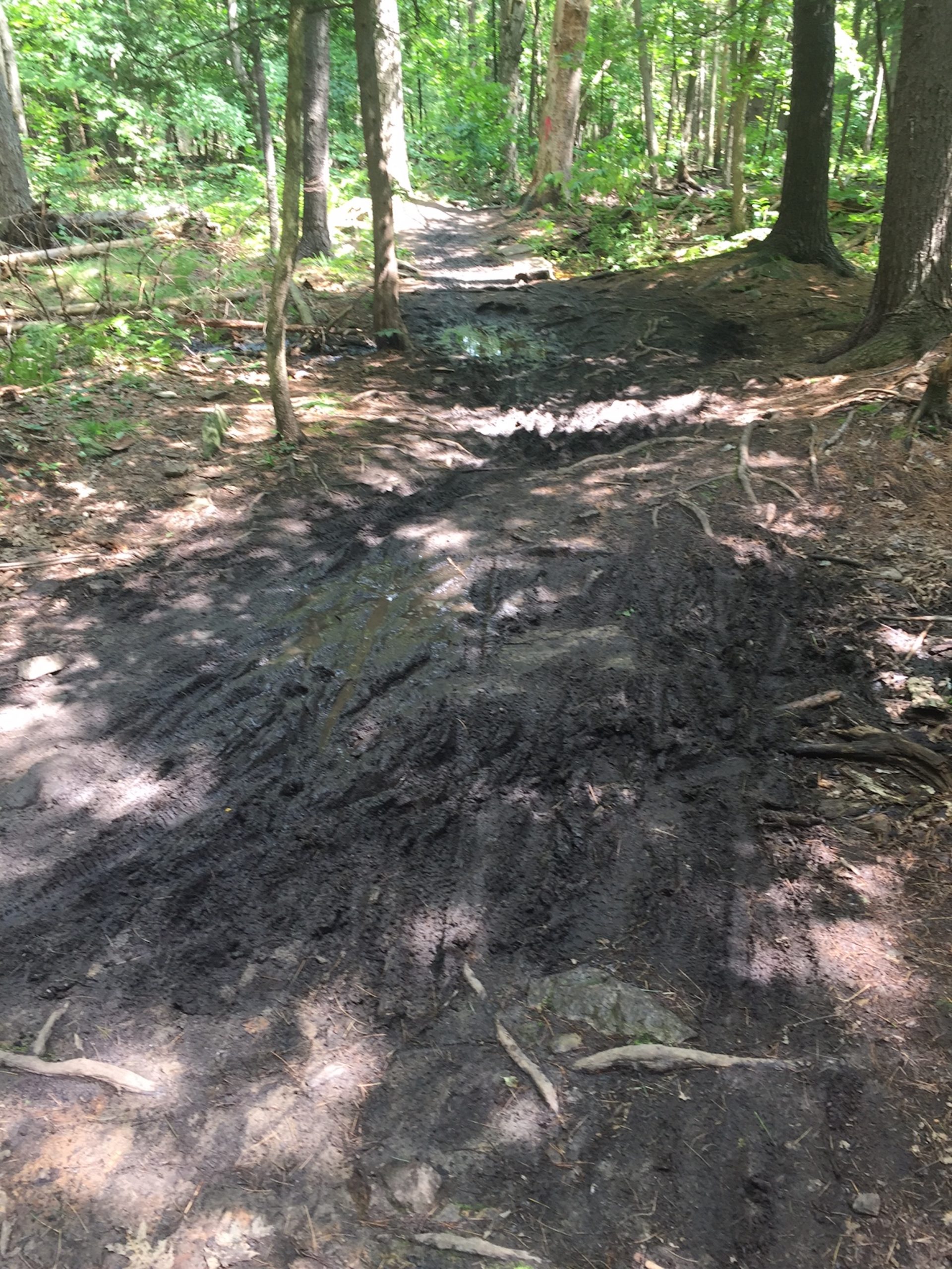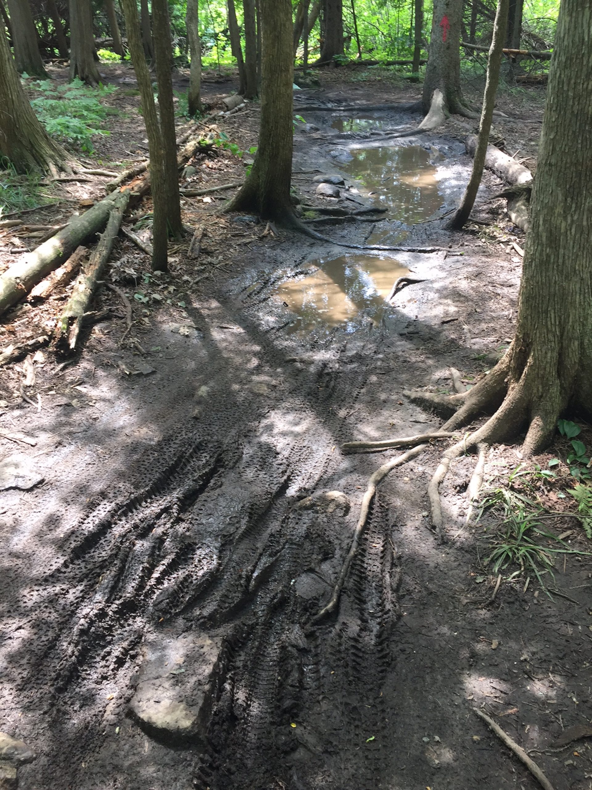 During this sloppy time of the year in spring, the mountain bike trails are thawing, and are very vulnerable to damage. It can be warm and sunny, but the ground might still be partially frozen and is not properly absorbing the spring melt as quickly as you think. Stick to the gravel roads until your local mountain bike trail association says the trails are ready to ride. This includes mountain bikes and fatbikes—both do damage during the spring thaw. Even locally, some trail networks dry out faster then others, and the damage caused by riders can be demoralizing to the trail builders who spend countless hours trying to fortify the trails and improve the drainage. The nice path of rocks that magically creates the trail to avoid a wet area were not placed there by nature, it was your local trail builders who secured them into place, in hopes of getting the trails ready to ride as soon as possible. Riding your mountain bike in the mud in the spring before the trails are dry, is a recipe for bad karma for the rest of the season. It’s just not cool.