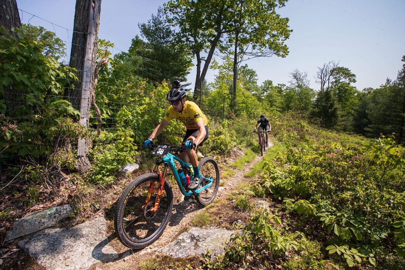 Three of us got away about half through and started rallying to build our gap. Then Logan flatted out and just Nick and I were left to gap building. Earlier in the stage I could tell I was the stronger of the group in the tech. With a slippery tech climb coming up I decided to punch a bit to test Nick out. (This is where I probably wouldn’t have pushed had I known about my 16 PSI in the rear). I got a small gap and built on it as the rocks continued. That low tire pressure was probably helping me grip my way along slimy, slanted, rock and I walked away with an almost four min lead on day one.