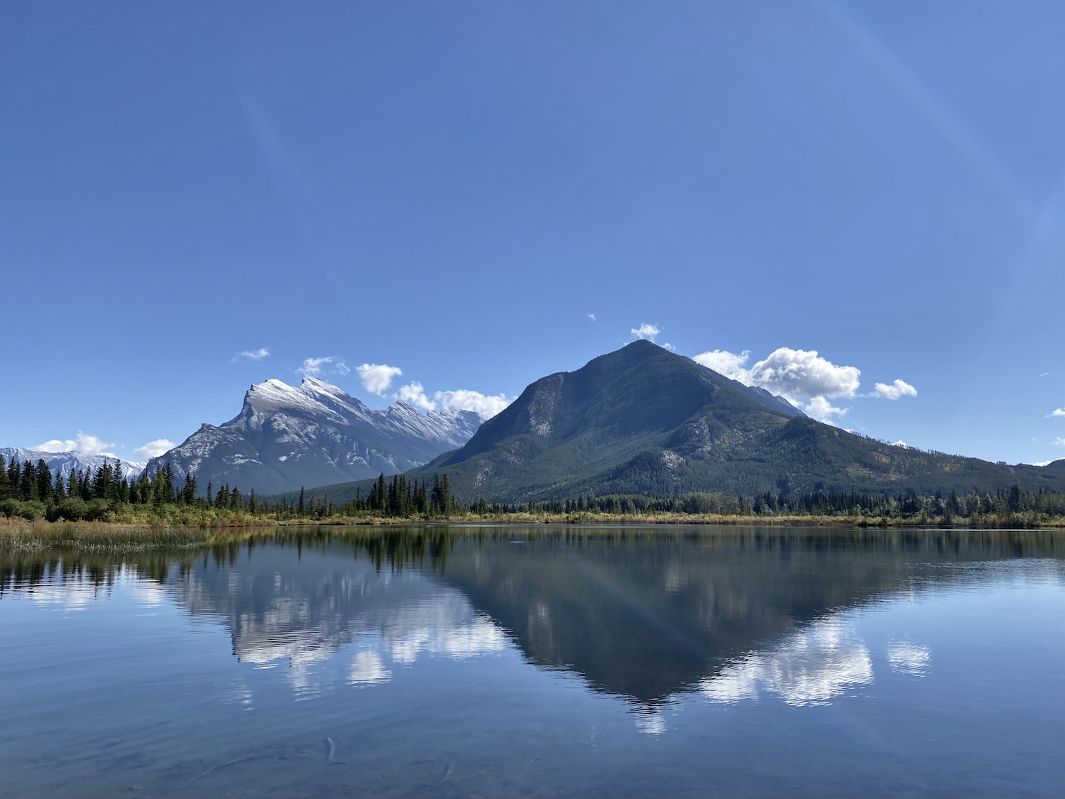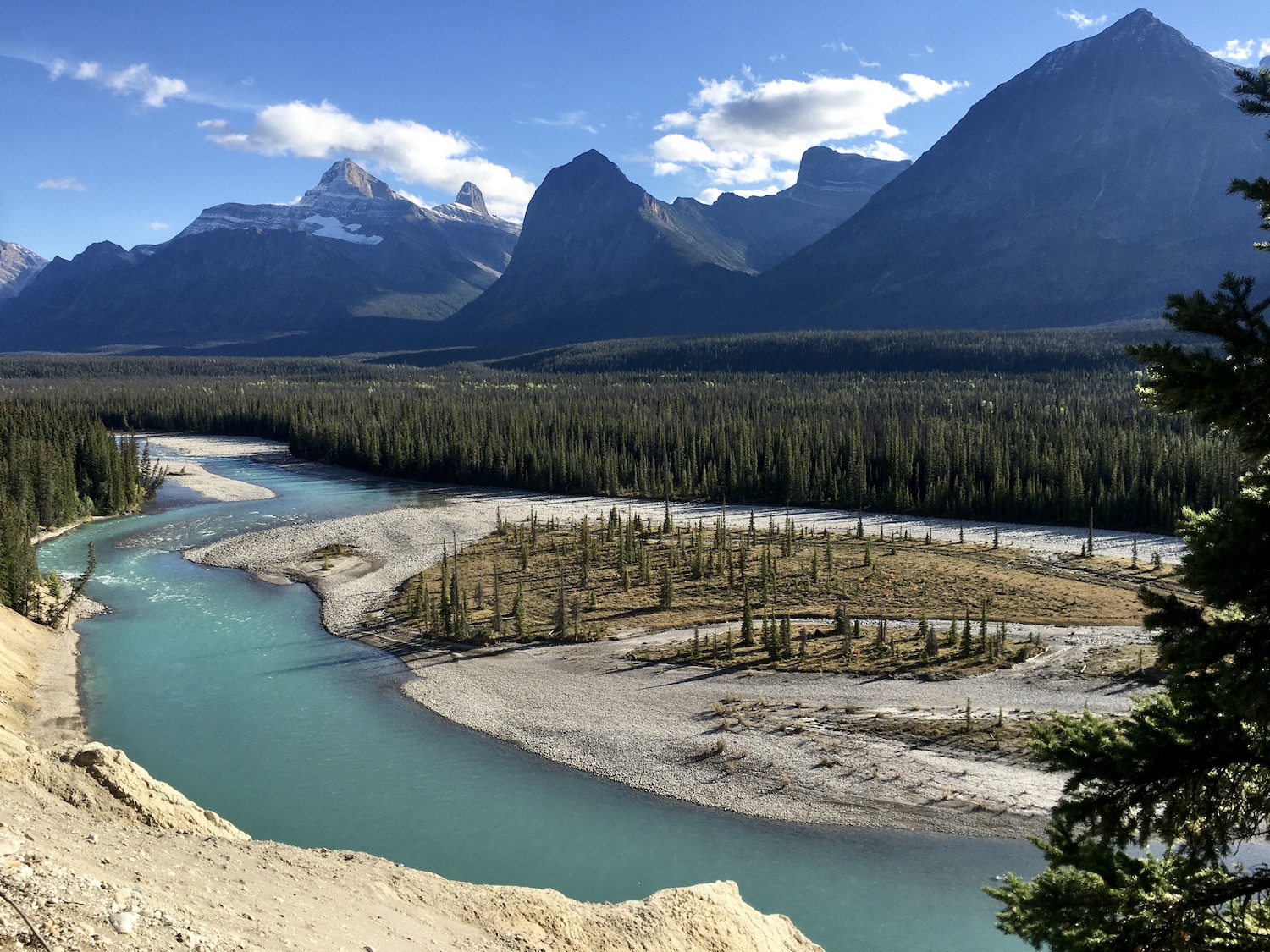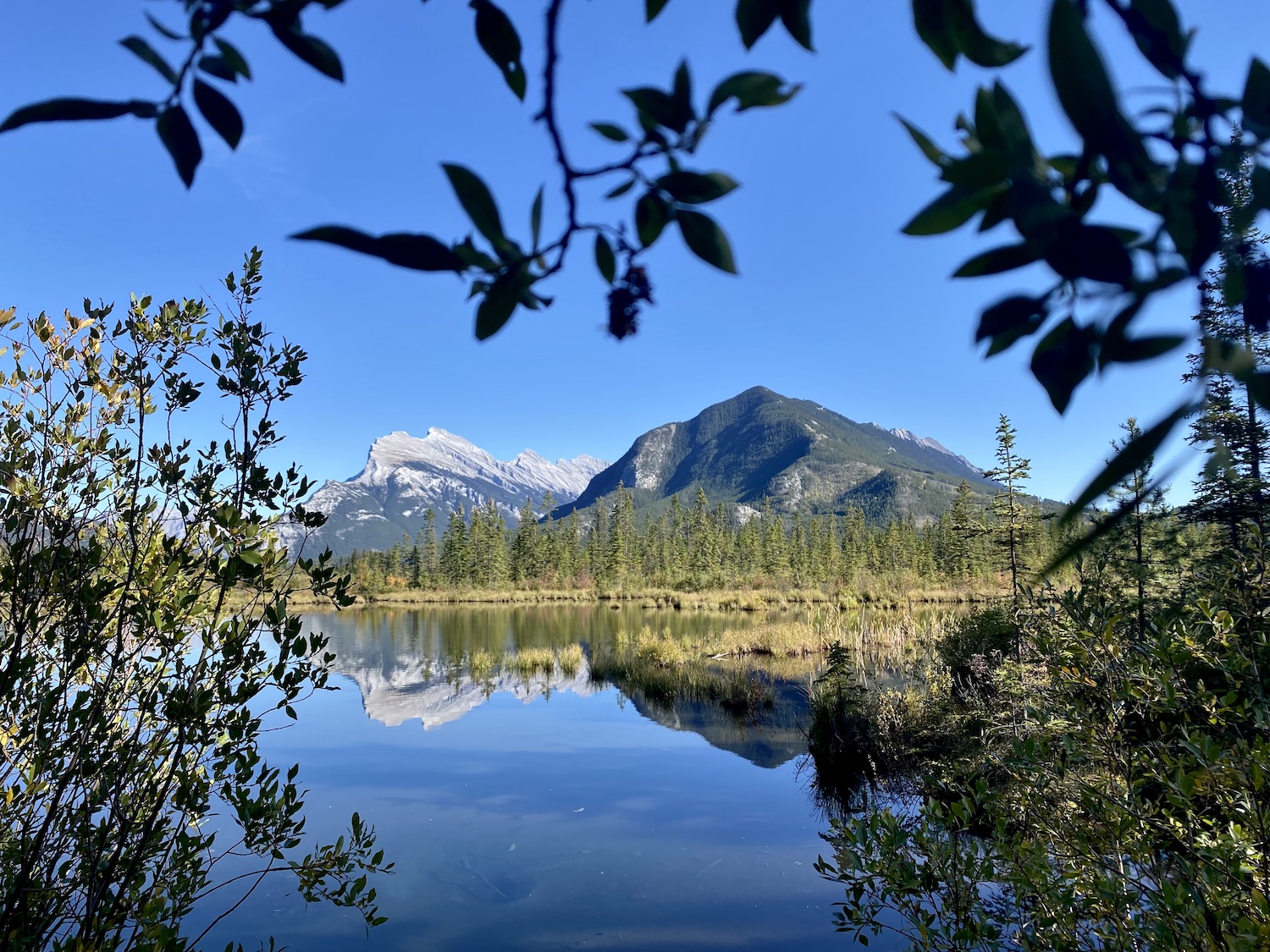 Another change was that the multi-use trails, closed seasonally to bikes, were open once again. I was lucky enough to spend a day riding around the shoreline of Lake Minnewanka – meaning ‘the lake of spirits’ in the Stoney-Nakoda language – on the day it officially reopened. At the far end of the ride, I noticed bear claw markings on the trembling aspens and accidentally laid my bike on top of a fresh pile of scat. Even though we were only 15km from the trailhead, it was clear we were in an area seldom visited by hikers. We finished our snacks on a gravel spit by the lake and then raced the cross-country single track back to the car park. We didn’t run into any bears, spirits, or spirit-bears, but it was exhilarating to be travelling through an area that felt so remote.