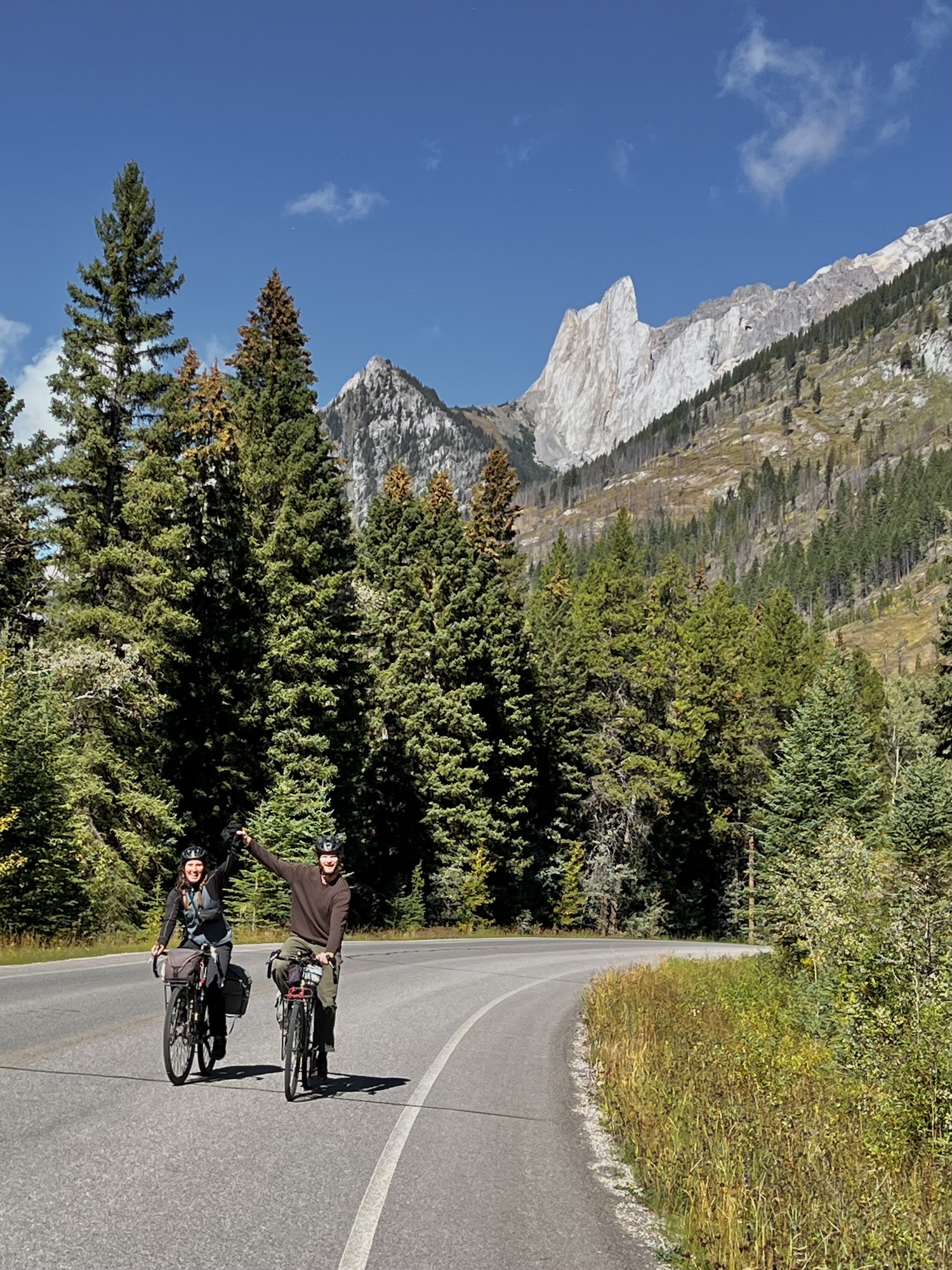 Although the Bow Valley Parkway is a popular summer cycling route, it typically has to be shared with a steady flow of traffic. When September hits, it’s closed to vehicles once more which means I could enjoy the scenic drive without stressing about being sideswiped. I brought my mom, my boyfriend and my Sutra along for the ride. The turning leaves around us were as yellow as the lines we were swerving over. Looking up, the first dusting of snow on the towering slabs highlighted each one of their ancient stone layers. We picnicked in their shadows before heading back to town, taking up space and taking our time to enjoy the peaceful parkway. I always find road riding more enjoyable when cars aren’t involved.