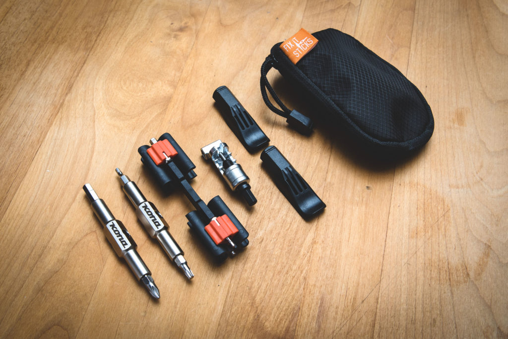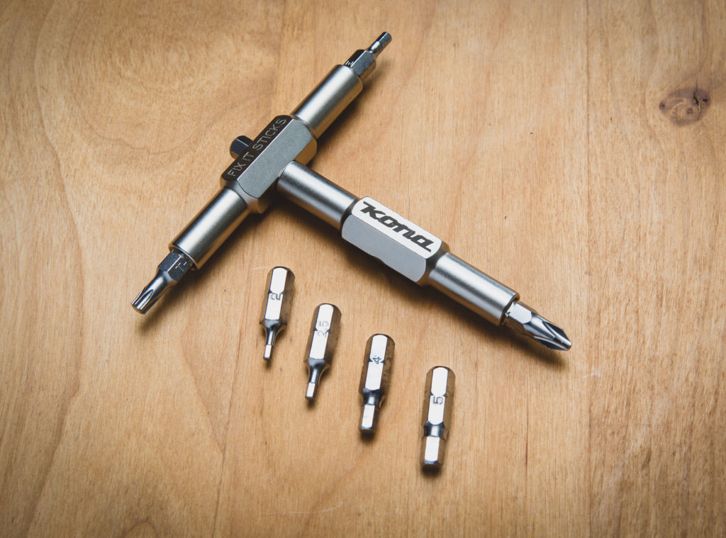 We’ve just added a ton of new stuff to the international Kona web store. There are three new t-shirt designs, three new beanie colors and a very limited edition set of Kona etched Fix-It-Sticks, and we’ve even added the very, very accurate presta version of Accu-Gauge’s 30psi tire gauge, for getting those tire pressures absolutely spot on. Click on any of the pictures below to be transported immediately to our web store.