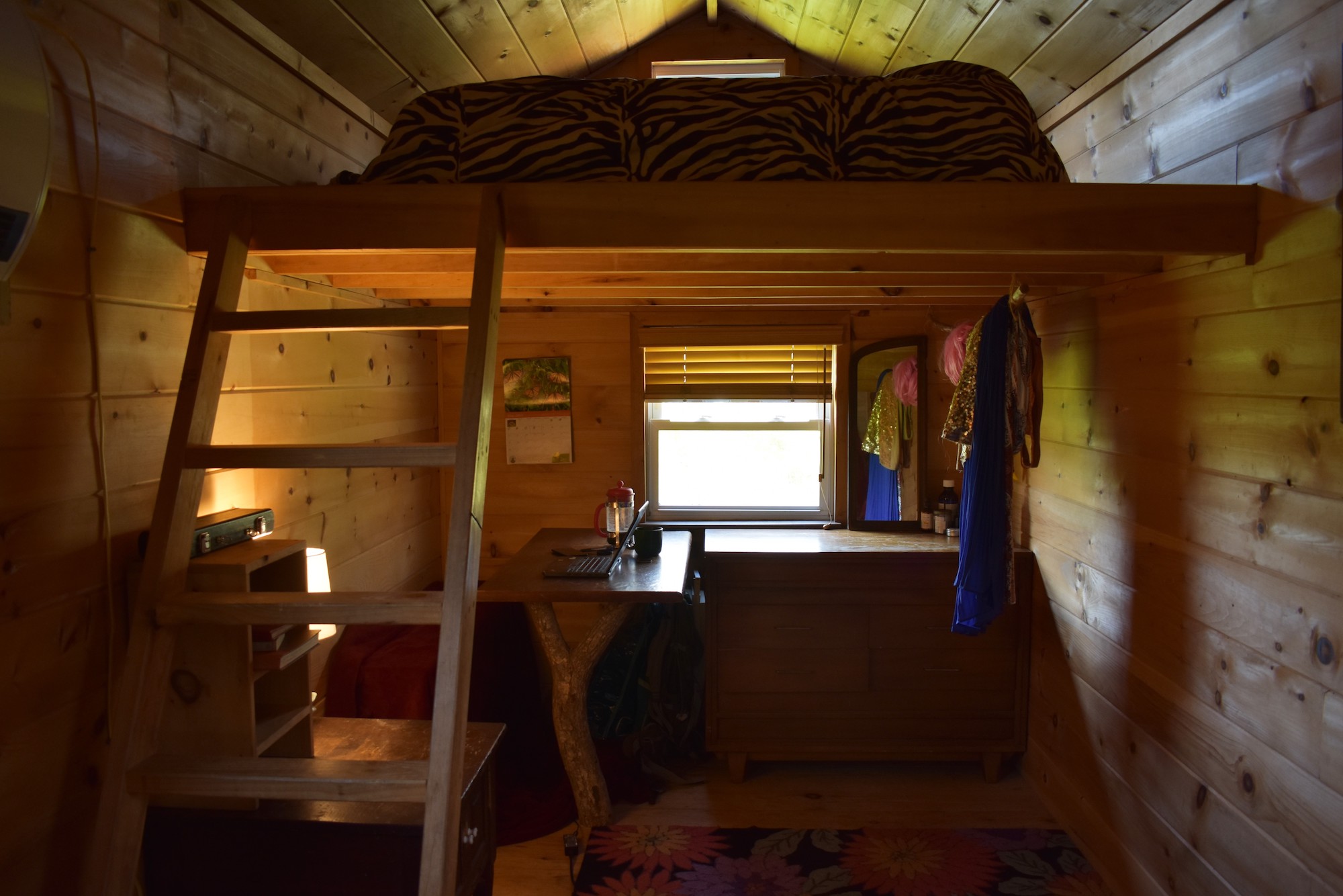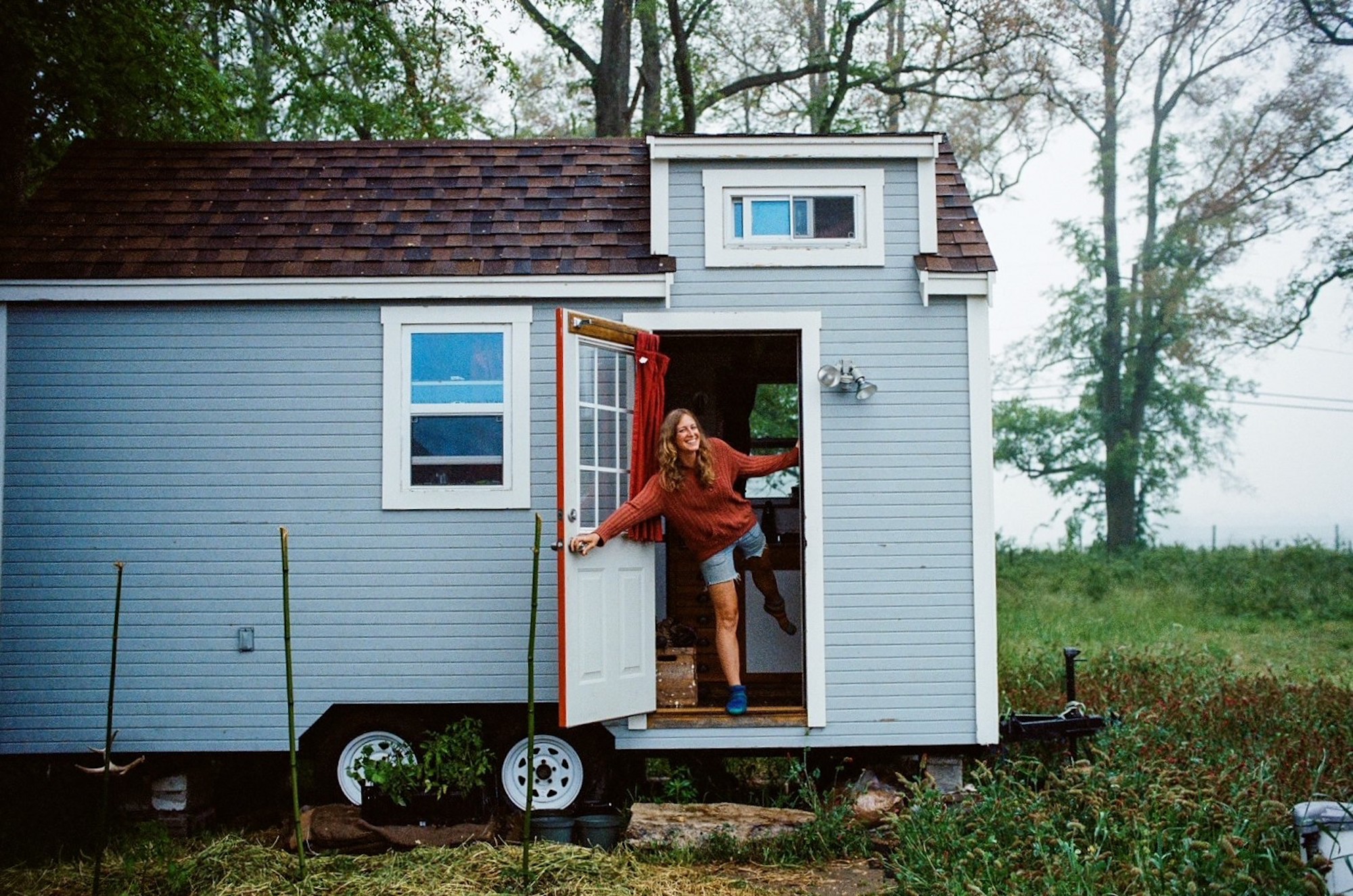 Right now I’m typing this essay from a folding desk in my current 16-foot microdwelling in Massachusetts. Out the window a herd of cows swish their tails and stick their noses in the grass. I can hear their hooves crunching through the bushes while birds flit and sing overhead.