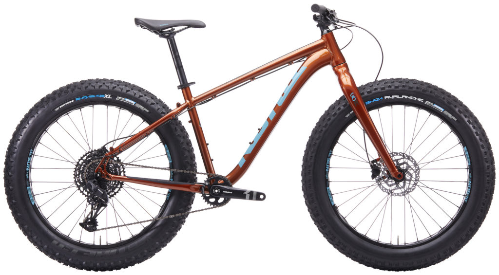 The Wozo has become our guilty pleasure. Sure, it’s great to ride in typical Fat Bike conditions, but it also rips on singletrack. With those mid-fat Maxxis tires, traction is paramount and bumps dissolve with ease. The Wozo runs on 27.5” wheels and a 100mm Manitou Mastodon Comp fork. We’ve updated the chainstay yoke for increased tire clearance, added a dropper post and upgraded the drivetrain to a SRAM SX Eagle 12-speed to help keep those big tires turning!
